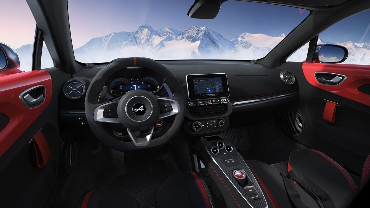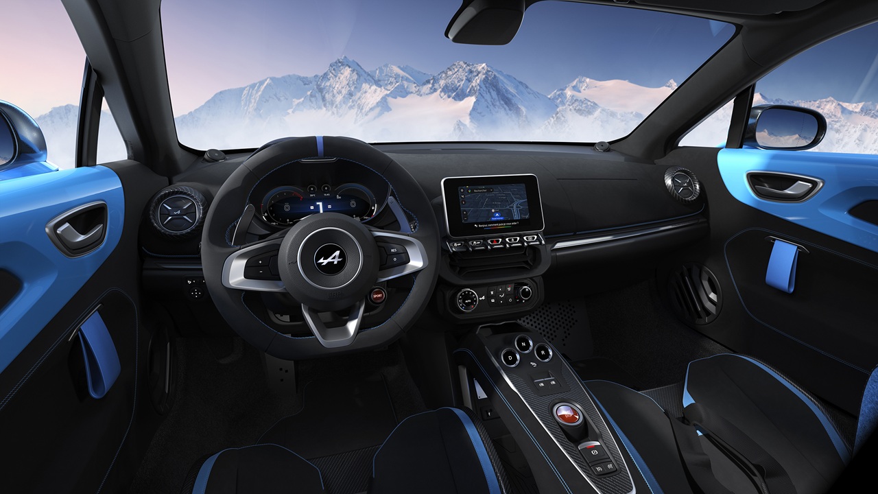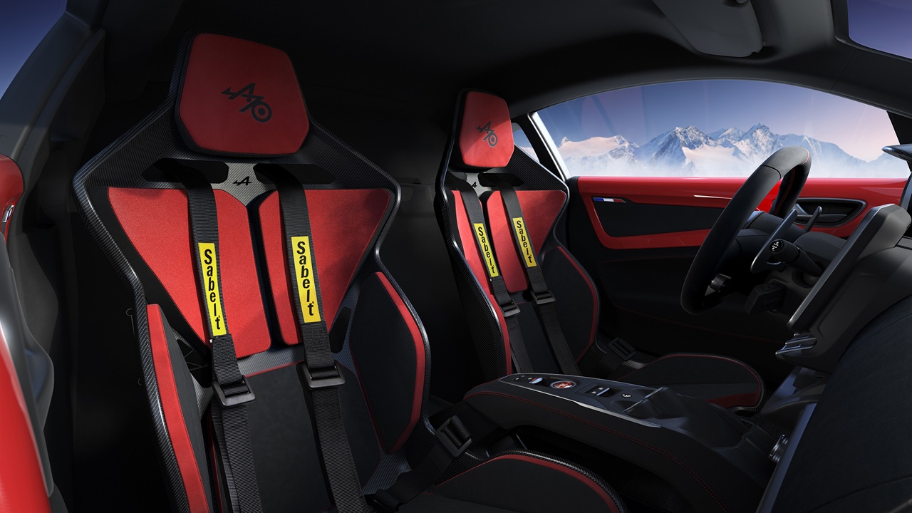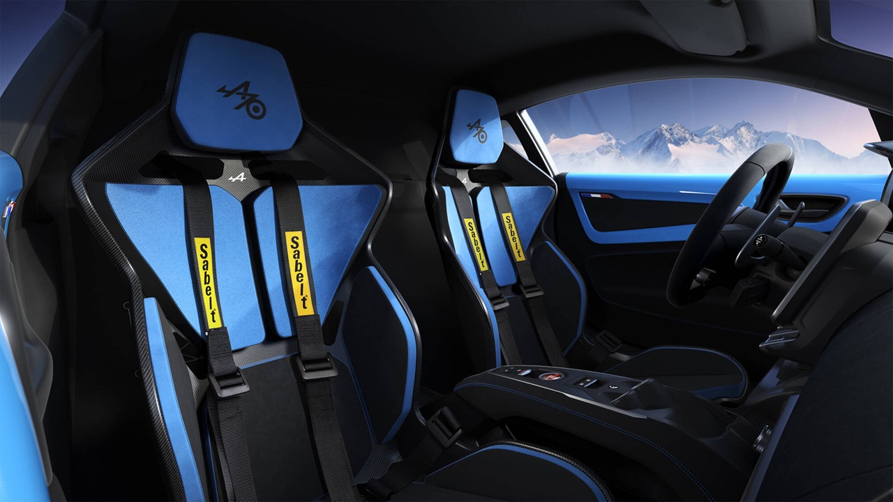 A110 ostaja zvesta izvirnemu duhu z motorjem 1.8 turbo (252 KM), 18-palčnimi platišči Serac Noir, zavorami Brembo in športnimi sedeži Sabelt v mikrovlaknih in usnju.