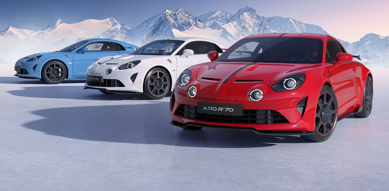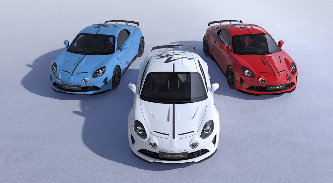 Najbolj ekskluzivna različica, A110 R70, praznuje 70-letnico znamke Alpine. Izdelana je v omejeni seriji 770 vozil, prepoznavna pa je po številnih karbonskih elementih – od pokrova motorja do strehe in spojlerja. Športno podvozje in 300 KM zagotavljajo vozni užitek, primeren njenemu ikoničnemu videzu.