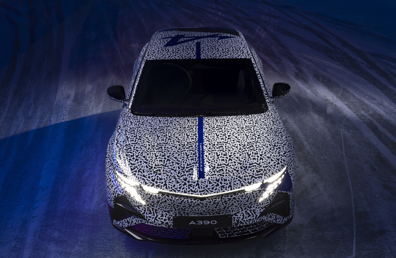 Model A390 prinaša čustveno nabito vozno izkušnjo in je zasnovan za vsakodnevno uporabo, hkrati pa se lahko spremeni v pravi športni avtomobil. Njegova unikatna osvetlitev sledi oblikovni smeri konceptnega modela A390_β in nadaljuje estetiko modela Alpenglow. Pod prednjo svetlobno letvijo so razporejeni trikotniki ‘Cosmic Dust’, ki ustvarjajo podobo kometa, ki prodira skozi atmosfero. Sprednja svetlobna linija daje vtis lahkotnosti in aerodinamične prefinjenosti.