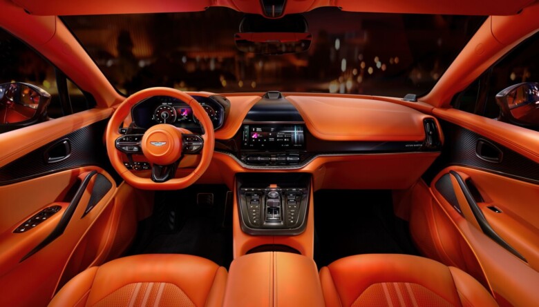 Prenova notranjosti Aston Martina DBX je sledila filozofiji, uporabljeni pri DB12 in Vantageu, s ciljem ustvariti harmonično in prijetno okolje. Armaturno ploščo zaznamuje vodoravna črta, ki deli zgornji od spodnjega dela. Celotna kabina izžareva mojstrstvo izdelave, uporaba kromiranih materialov, teksturirani zaključki in preprostejša zasnova sredinske konzole pa dodajo pridih elegance in skladnost med športnostjo in razkošjem.