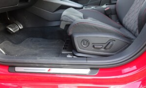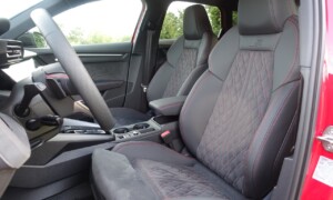 Sedežna garnitura je zamišljena dokaj nizko, kar zagotavlja udobje za štiri odrasle potnike. Peti potnik na sredini zadnje klopi ima nekoliko manj udobja zaradi sredinskega grebena, ki je visok približno dvajset centimetrov. Prevleke, kot je tekstilna na armaturni plošči, so delno izdelane iz recikliranih materialov, kar poudarja okoljsko ozaveščenost proizvajalca.