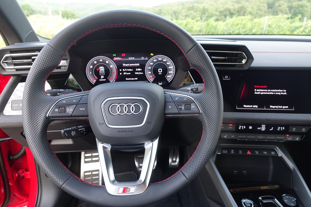 Tehnologija in Oprema: Standardna oprema razen električno nastavljivih in ogrevanih zunanjih vzvratnih ogledal, ogrevanih šob za pranje stekel, paketa notranje osvetlitve asistence pri izogibanju in zavijanju in varnosti Audi pre sense front, ne ponuja veliko. Zato je pametno doplačati še marsikaj koristnega s spiska dodatne opreme. Naj omenim predvsem nova matrična LED-žarometa, ki omogočata prilagajanje svetlobnih vzorcev glede na izbiro voznikovih nastavitev, kar izboljšuje vidljivost in varnost med vožnjo. Tu so še zadnji LED luči, Audi hold assist za speljevanje in druge funkcije, progresivno krmiljenje, kot v testnem A3.