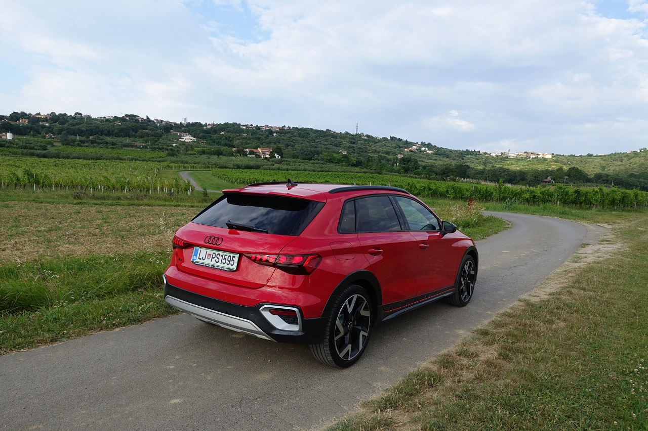 Motorji in zmogljivost: Audi A3 allstreet ponuja enake motorje kot Sportback, oba z močjo 110 kW (150 KM). Na voljo sta dvolitrski dizelski motor in 1,5-litrski bencinski motor z blagim hibridom in turbinskim polnilnikom, oba v kombinaciji z dvosklopčnim sedemstopenjskim menjalnikom. Testirani model je bil opremljen z bencinskim motorjem, ki zagotavlja dobro elastičnost in pospešek, kar je ključnega pomena za dinamično vožnjo. Voznik si lahko dodatno omisli kot pomoč prilagodljivo asistenco za vožnjo. Pri vzvratni vožnji si lahko pomaga, če dokupi, s kamero ali prav tako s parkirno asistenco s parkirnim sistemom