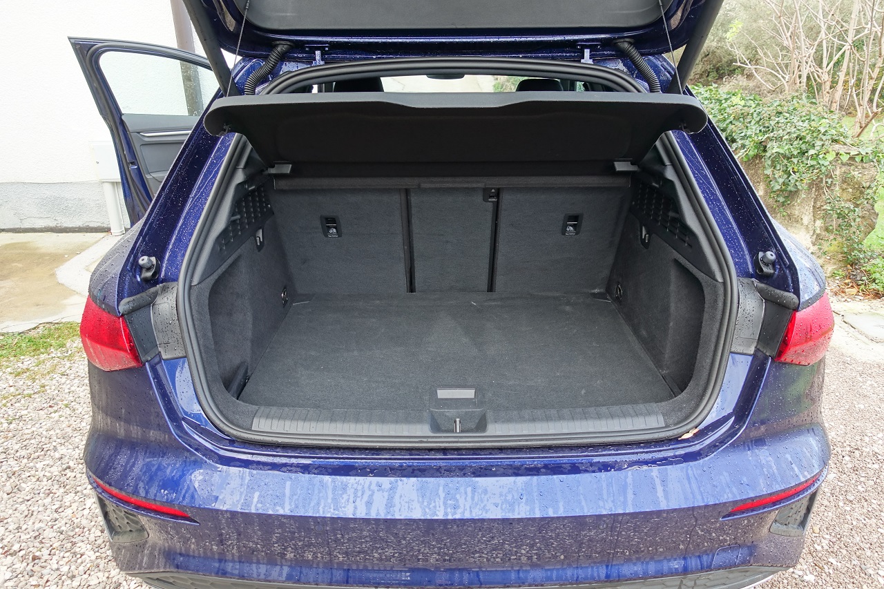 Prtljažnik osnovnih 380 litrov se lahko preko podrtih zadnjih sedežev poveča do 1200 litrov. Prtljažno dno se po potrebi lahko uporablja na različnih višinah, s praktičnim električnim odpiranjem in zapiranjem pokrova prtljažnika v dodatni opremi, tko kot 18-palčna platišča s pet-krakim dinamičnim dizajnom, zunanja ogledala električno nastavljiva, ogrevana in preklopna. Novost predstavljajo tudi digitalne dnevne luči matričnih LED žarometov, sestavljene iz točkovnega polja z značilno svetlobno grafiko, po kateri je A3 tudi prepoznaven.