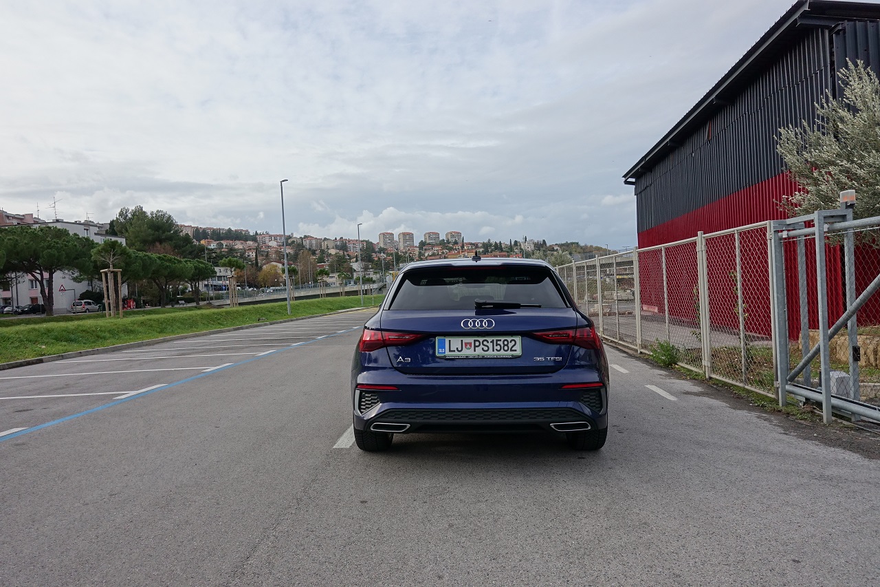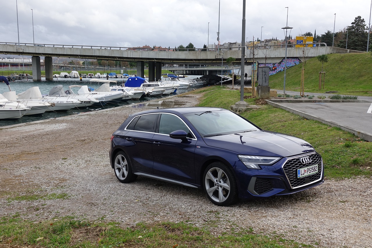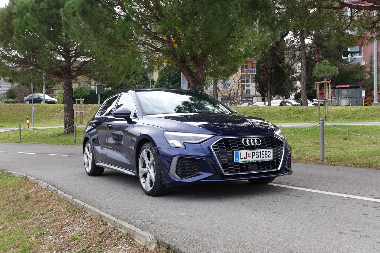 Izbira motorja v tem primeru je optimalna. 1,5-litrski bencinski motor TFSI 148 KM testne različice 35 TFSI S Line S-tronic cenejši od primerljivih 35 TDI in 40 TFSIe, a vseeno živahen v celotnem območju vrtljajev, prepričljiv že od 2000 vrt/min vse do rdeče črte zgornjega območja. Dobro uglašen s hitrim in dokaj nežnim robotiziranim menjalnikom z dvojno sklopko S tronic. Stabilen in nezahteven, s progresivnim krmiljenjem in s 3 cm krajšo medosno razdaljo kot prej, vzbuja tudi nekaj športnih občutkov in vzmetenjem, ki ni ravno najbolj navdušeno nad neravno podlago. Od 0 do 100 km/h se odzove v 8,4 s in uradno doseže 220 km/h.