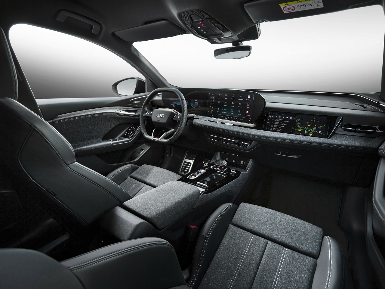 Notranjost vozila je oblikovana z mislijo na udobje in trajnost. Uporabljeni materiali, kot sta tkanina Elastic Melange in mikrotkanina Dinamica, so delno izdelani iz recikliranih materialov. V različicah S line so na voljo tudi visokokakovostni trajnostni materiali, vključno z brezovim lesom in tehnično tkanino v antracitni barvi, ki nadaljujejo Audijevo zavezanost trajnosti. Dodatno vzdušje ustvarja dinamična interakcijska osvetlitev, ki potnikom nudi različne komunikacijske funkcije in omogoča enostavno interakcijo z vozilom.