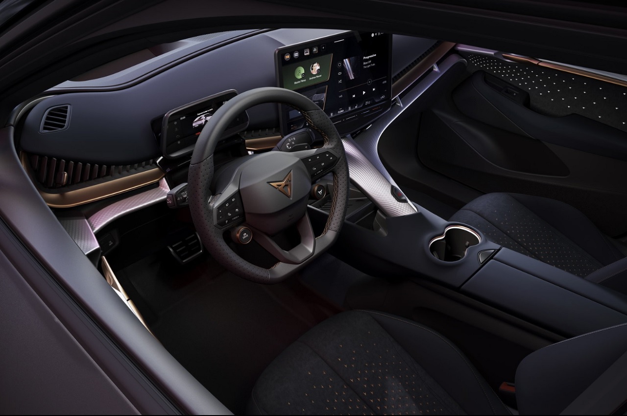Notranjost Cupre Tavascan se od ostalih modelov skupine VW, s katerimi si deli večinoma enako mehaniko loči po vodoravnem pasu bakrene barve, ki “objame” celotno armaturno ploščo. Volan, prirezan nizko, kot ga najdemo pri čistokrvnih športnih avtomobilih, ima poleg lopatic za regulacijo rekuperacije energije različne komande. 15-palčni zaslon multimedijskega sistema je nameščen na sredini armaturne plošče, obkroža pa ga kompaktna 5,3-palčna plošča, odgovorna za nadzor instrumentov. Sedeži so športno nastavljeni. Špansko podjetje pa je vgradilo tudi dodelan avdio sistem, razvit v sodelovanju s Sennheiserjem, ki vključuje skupno 12 zvočnikov.