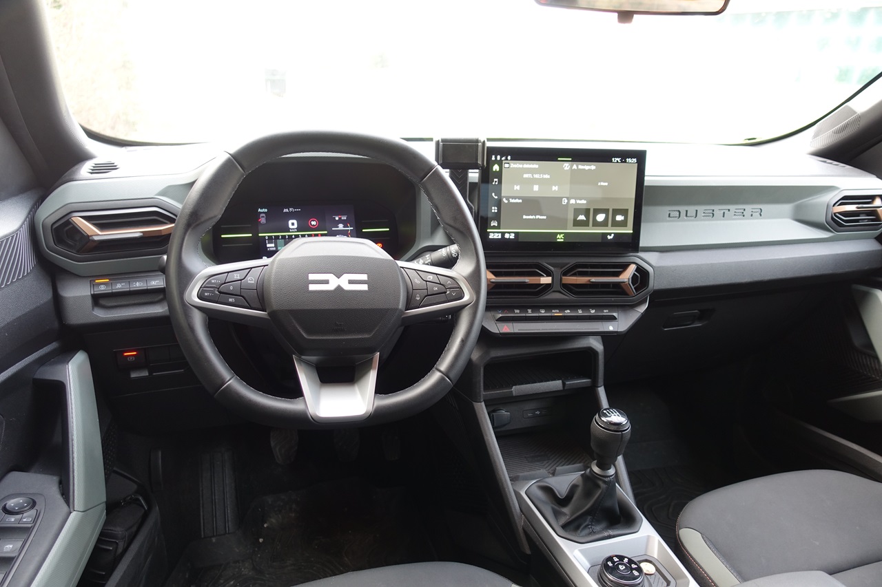 V primerjavi s prejšnjo generacijo ohranja nova Dacia Duster enako dolžino 434 cm, kar je približno 30 cm več od povprečne mestne kombilimuzine. Testirana različica z motorjem 1.2 mild hybrid s 130 KM (96 kW) je edina, ki je na voljo tudi s štirikolesnim pogonom. Čeprav so cene nekoliko zrasle, je oprema občutno bogatejša. Visoko zmogljivost z edinim pogonskim sklopom, ki je na voljo v izvedbi 4×4 ali s pogonom na prednja kolesa se odlično znajde tako na cesti kot na terenu, če si voznik želi zaviti na neustaljene vozne poti, blato in strmine. TCe 130 je Mild Hybrid. Pomeni, da med vožnjo uporablja tako bencinski motor kot tudi električni zagonski generator. Slednjega poganja 48 V akumulatorska baterija ki, pomaga motorju z notranjim zgorevanjem v fazah, ki zahtevajo največ energije.