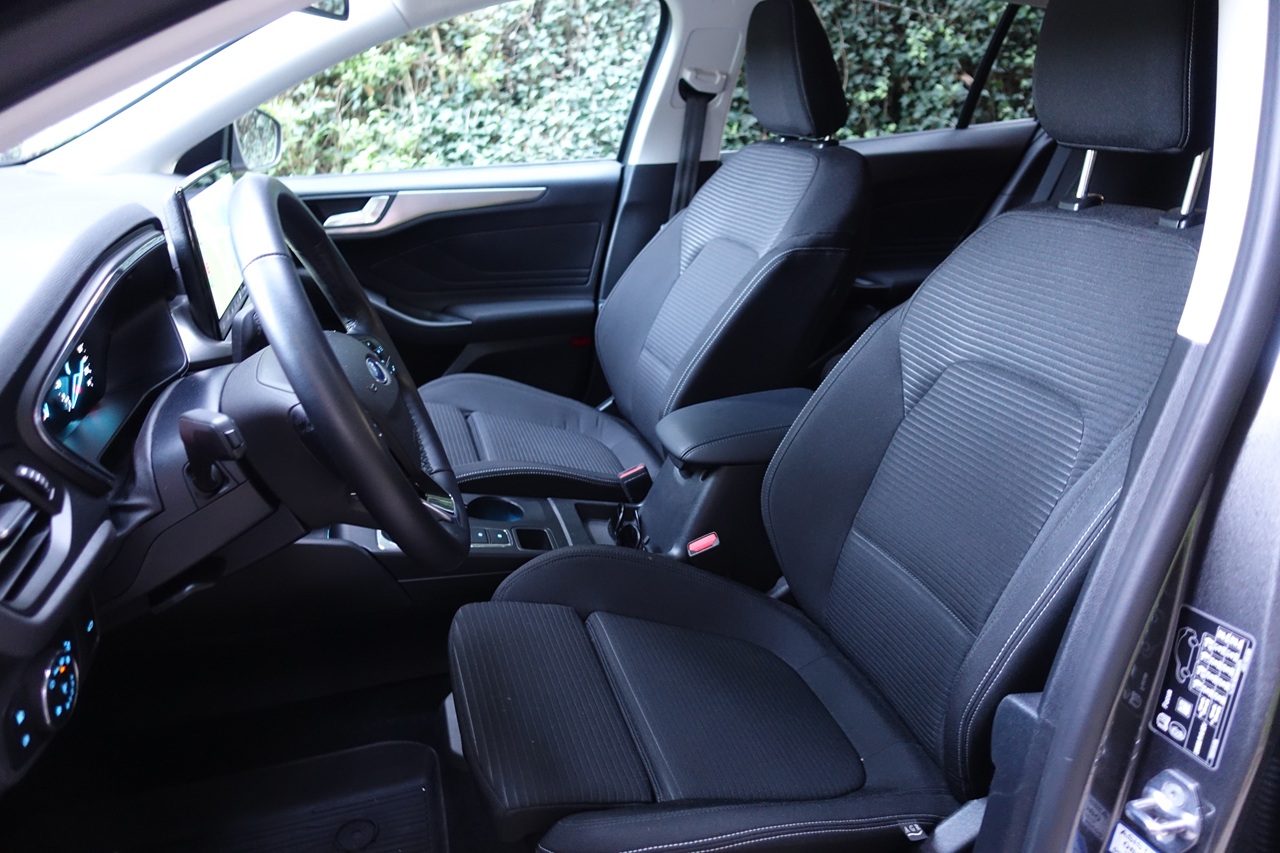 Focus karavan je serijsko opremljen z vrsto varnostnih sistemov, med njimi s sistemom za ohranjanje voznega pasu in samodejnim zaviranjem v sili. Za dodatne asistenčne sisteme, kot so prilagodljivi tempomat, nadzor mrtvega kota in sistem za opozarjanje na promet pri vzvratni vožnji, je treba doplačati paket Co-Pilot. Multimedijski sistem SYNC 4 je pregleden, hiter in bogato opremljen, s številnimi možnostmi povezovanja.