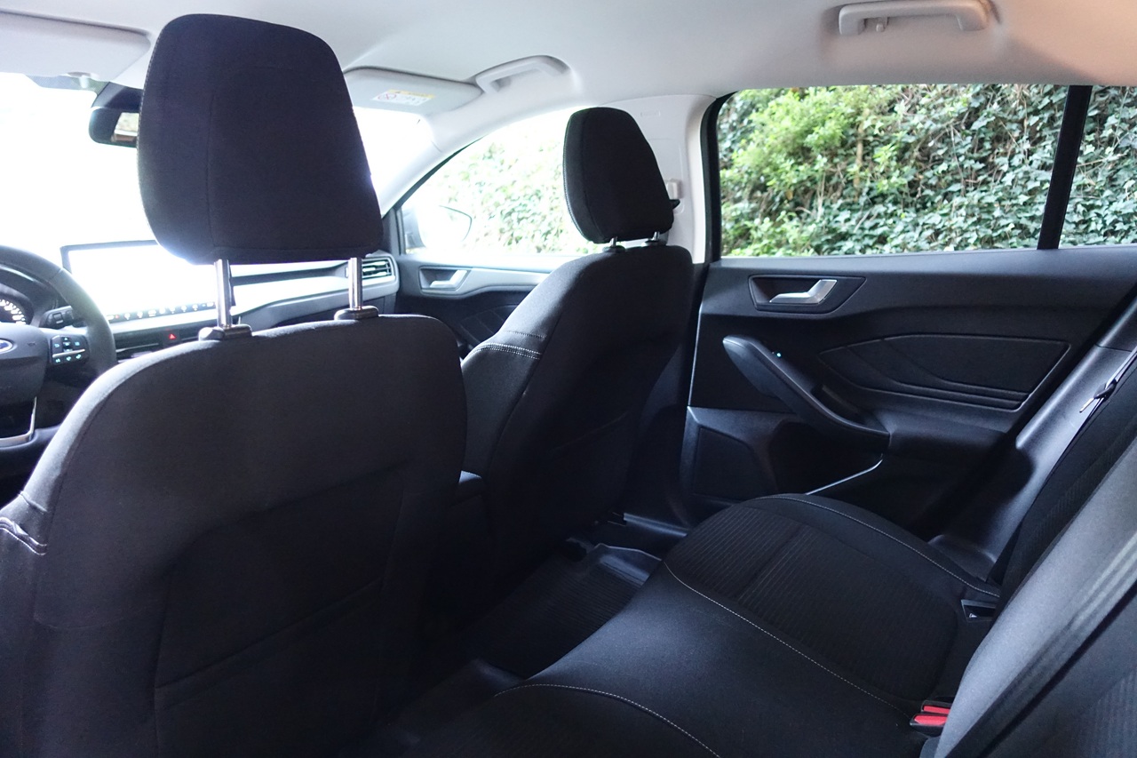 Focus karavanje eden najbolj prostorskih modelov v razredu. Potniki na zadnjih sedežih imajo na voljo veliko prostora za noge, ravno dno olajša sedenje tretjega potnika, sedeži pa so udobni tudi na daljših poteh. Negativno izstopa odsotnost zadnjih zračnih rež, kar bi izboljšalo kroženje zraka za potnike zadaj. Prtljažnik s 635 litri prostornine je med največjimi v segmentu, zadnja klop se podre s praktičnimi ročicami, manjkajo pa električni odpiralni prtljažnik in boljša razsvetljava.