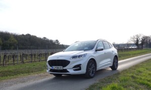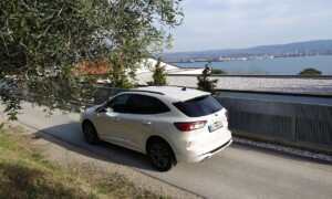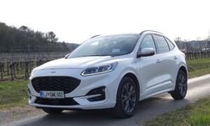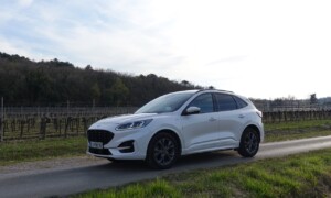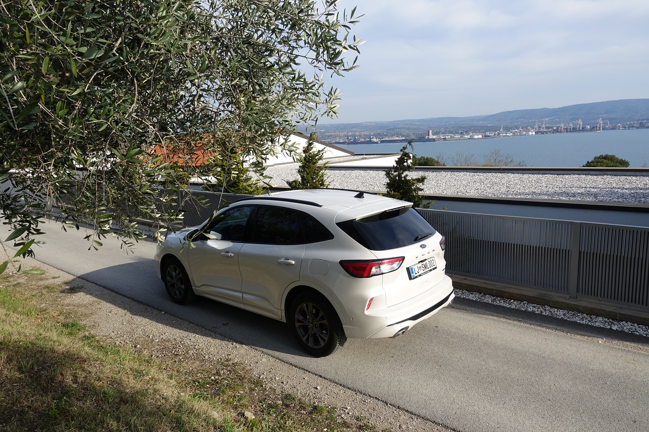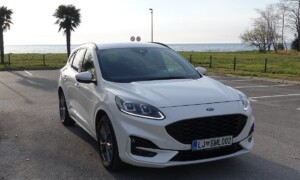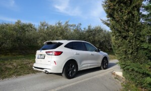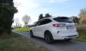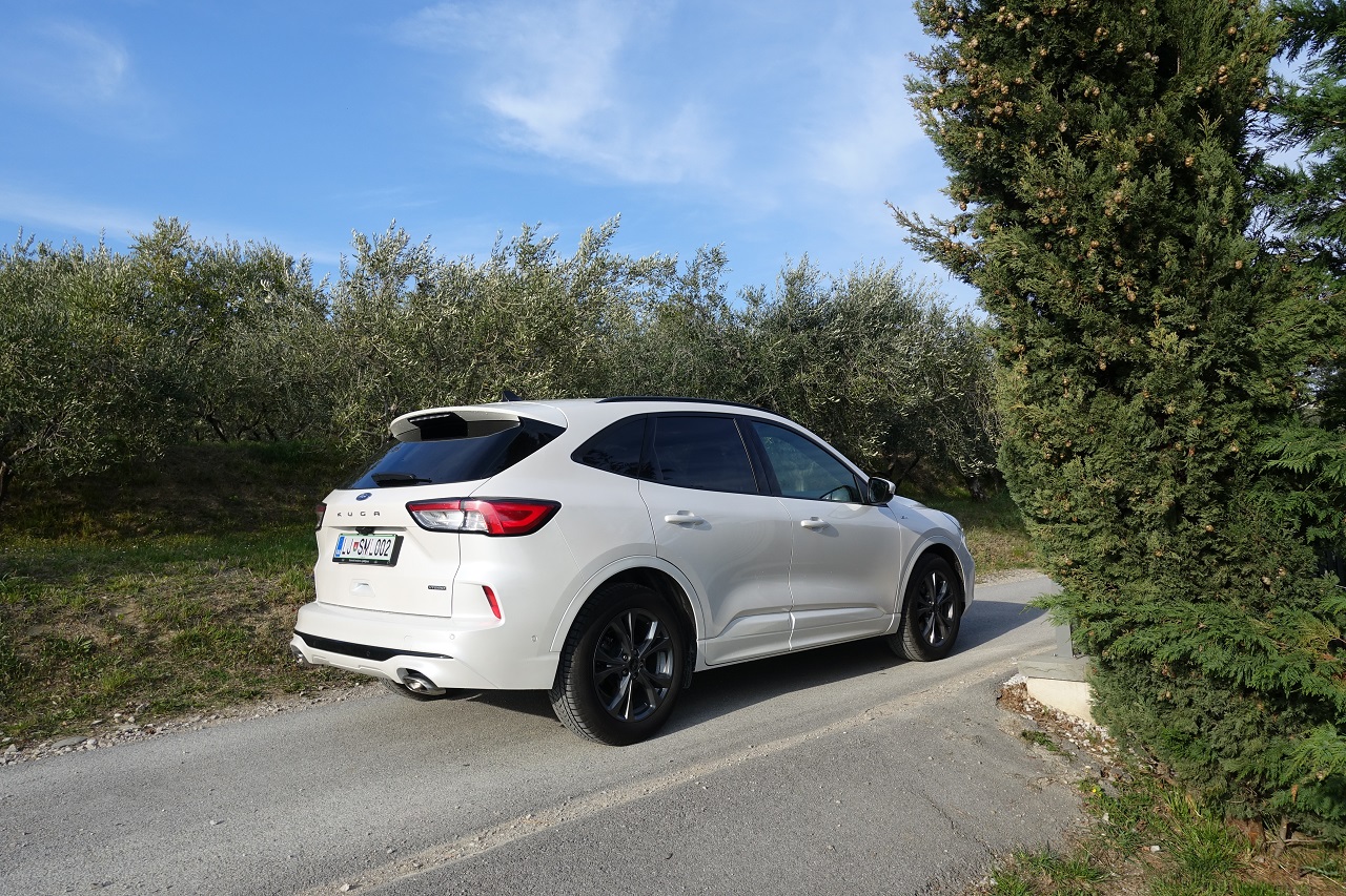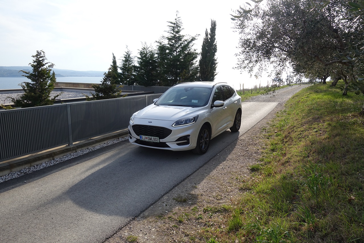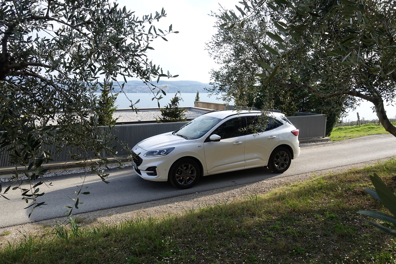 Popoln hibridni sistem v marsičem zadovoljuje, predvsem zaradi nizke porabe goriva uglajenega teka, malo manj zaradi 190 konjskih moči, ker ni tako živahen, kot bi pričakovali. Brezstopenjski samodejni menjalnik v veliki meri opravlja svojo nalogo več kot zadovoljivo, predvsem ob umirjeni vožnji, zlasti na daljših relacijah. Ne leži pa mu, ko voznik odločno stopi na plin, zato se glasneje oglasi pri visokih vrtljajih. Sicer pa je vožnja ob natančnem volanu uglajena in sproščujoča. Voznik bo začutil, da je Kuga zanesljiva, tudi na spolzkih površinah in v hitrih ovinkih. Voznik se lahko zanese tudi na sisteme za preprečevanje naleta z zaznavanjem pešcev s pomočjo kamere za ‘pregled’ cestišča pred seboj. Ko zazna nevarnost trčenja z vozilom, pešcem ali kolesarjem, voznika na to opozori. V kolikor se ne odzove pravočasno, lahko sistem samodejno aktivira do popolne zavorne sile, kar pomaga zmanjšati intenziteto ali celo odpraviti trke.