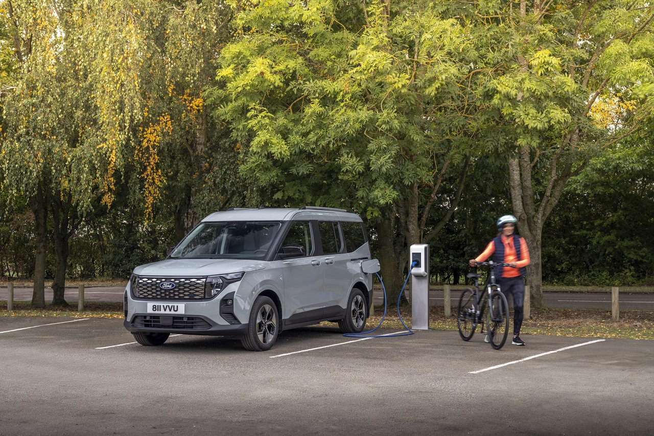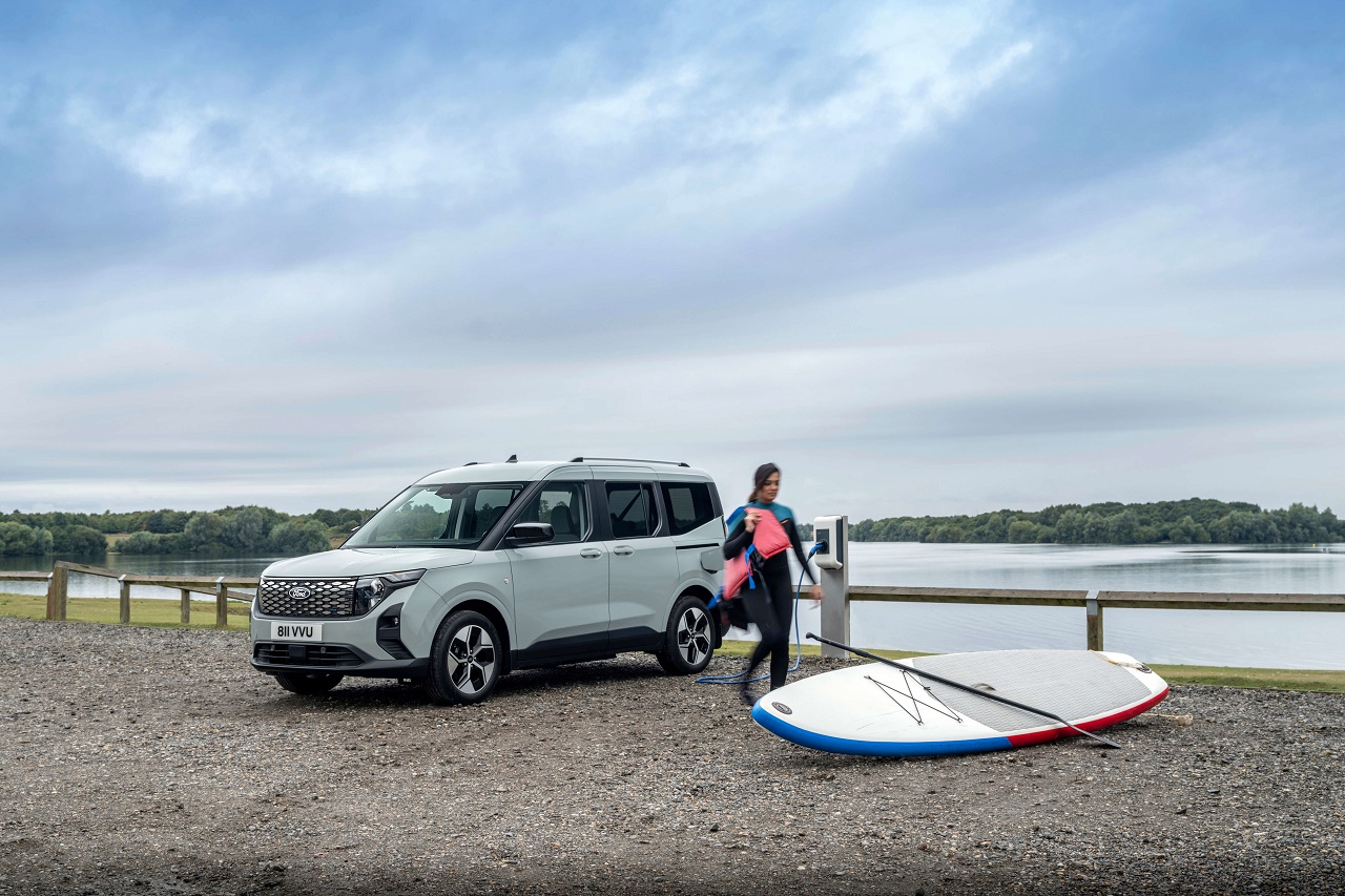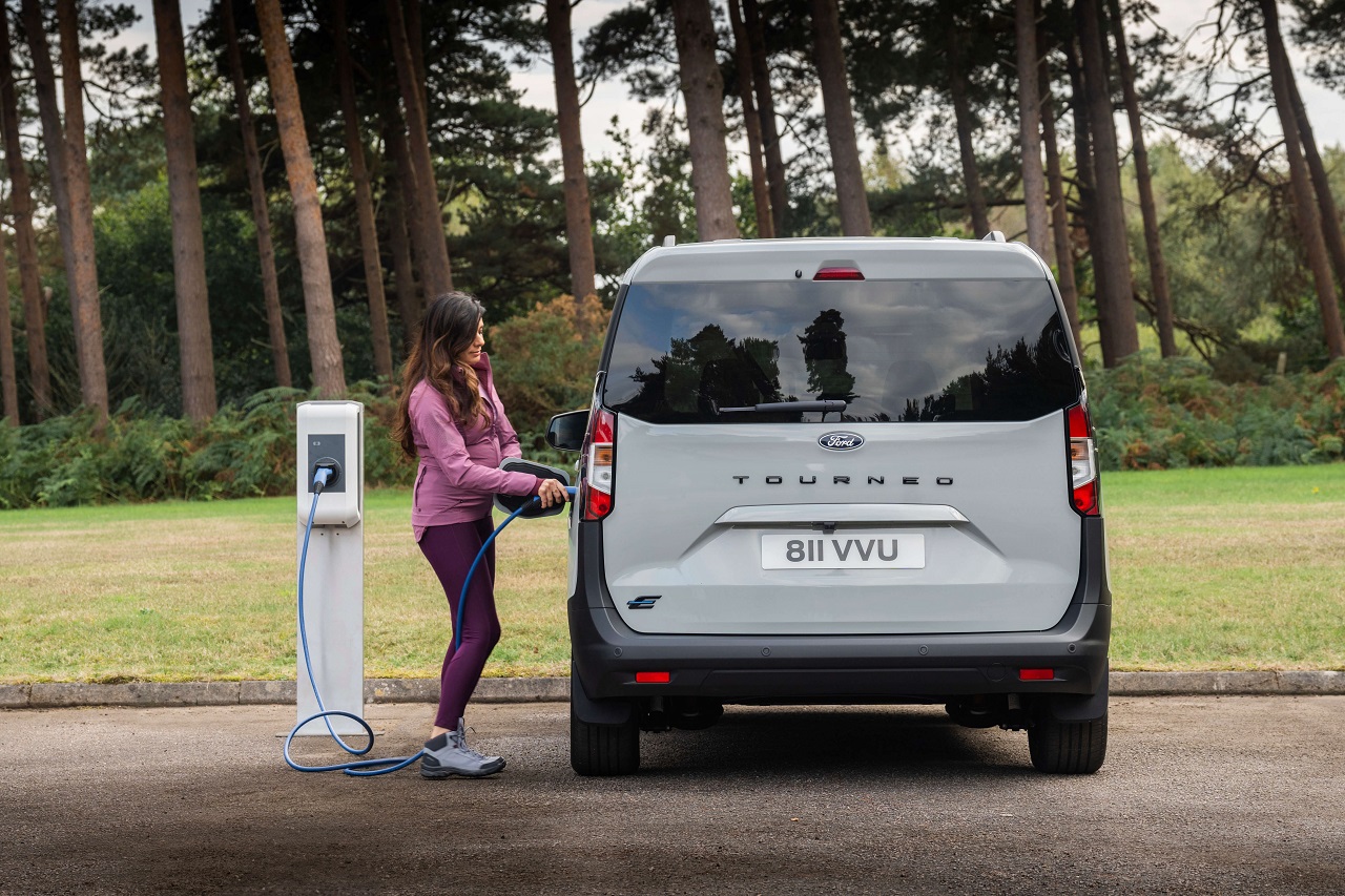 Ford predstavlja povsem novi električni E-Tourneo Courier, ki združuje drzno obliko, prostorno notranjost in pametne povezane tehnologije, s katerimi olajša vsakodnevno uporabo. Ta kompaktni petsedežnik ponuja do 288 km dosega in hitro polnjenje, kar uporabnikom omogoča preprosto polnjenje doma ali na poti.