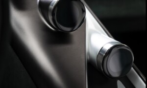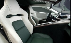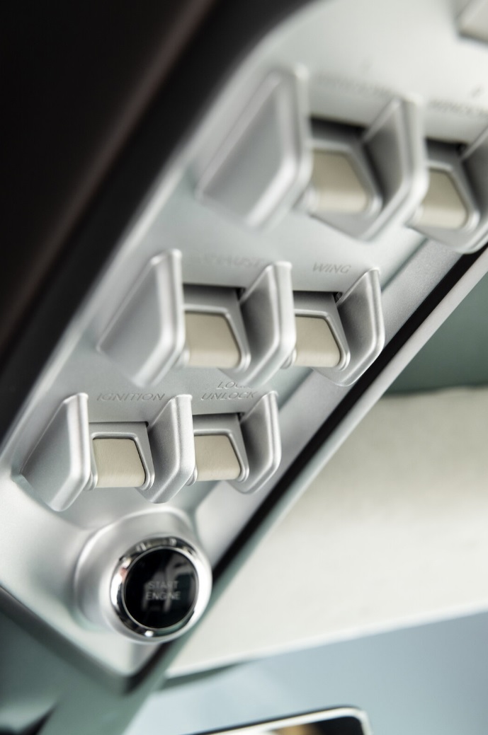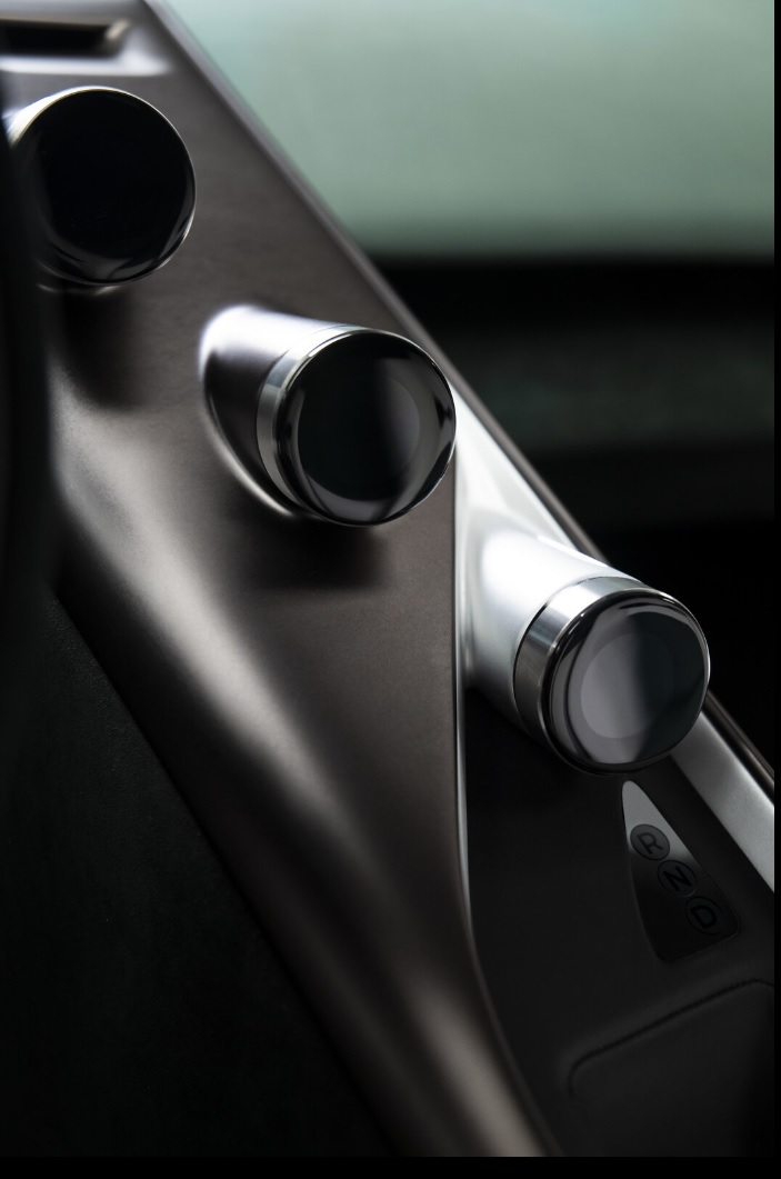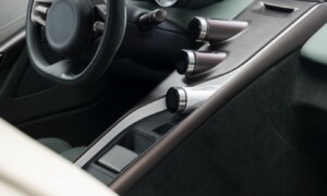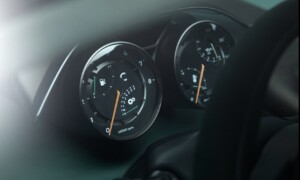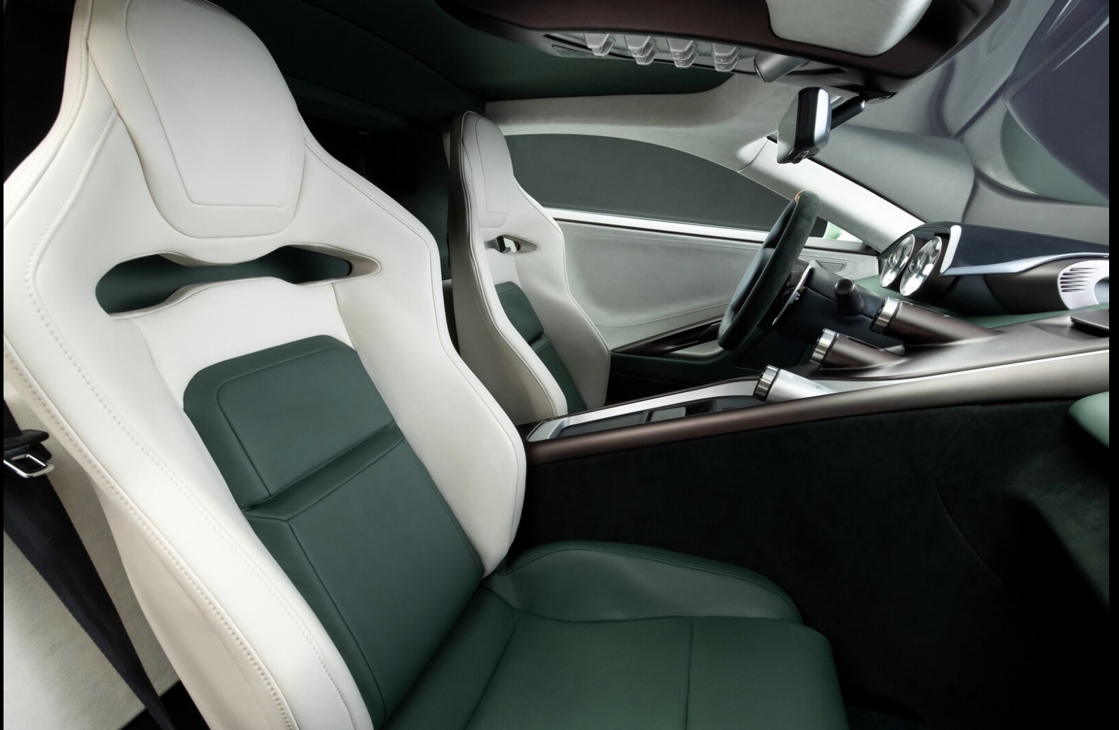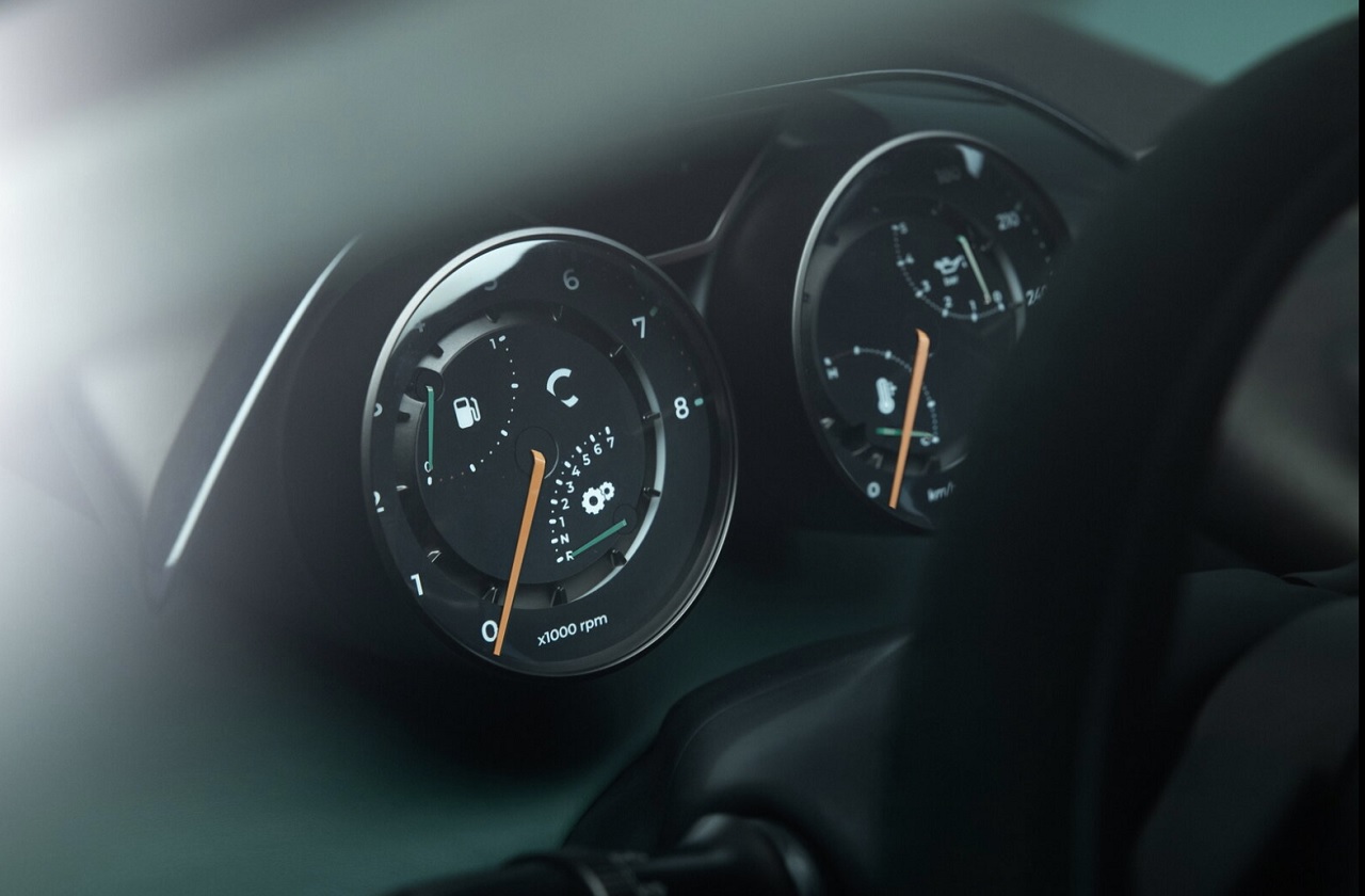 Notranjost vozila je povsem preoblikovana – razkošno temno zeleno in kremno usnje obdaja voznika, sredinska konzola pa vključuje tri nagnjene vrtljive številčnice z zasloni na dotik. Avto je posodobljen z brezžično polnilno ploščico, Apple CarPlay, digitalno instrumentno ploščo in izjemno natančno nadzorovano notranjostjo. Zvočni sistem po meri in digitalno vzvratno ogledalo prispevata k dovršenosti notranjosti.