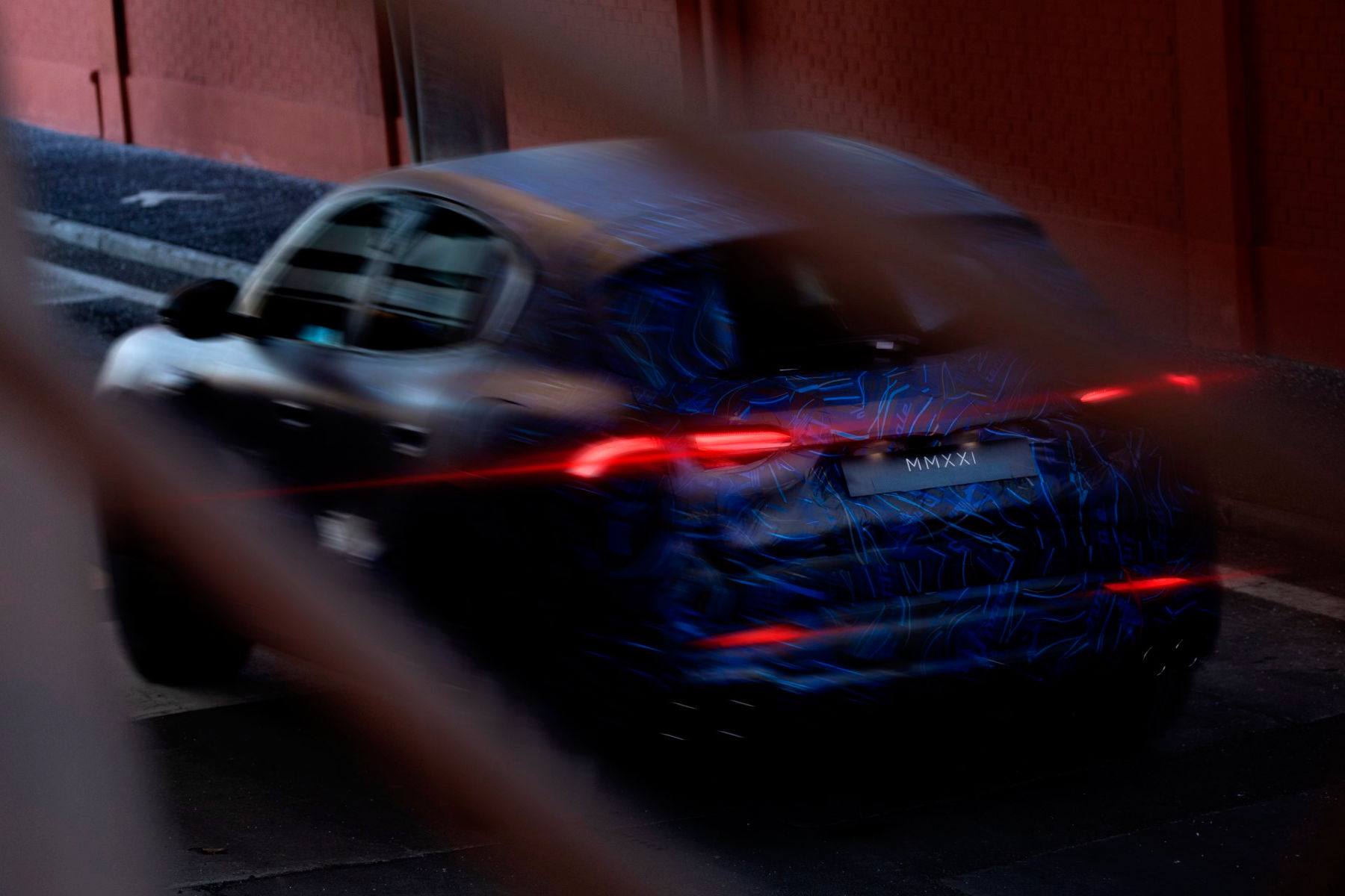 Prvi primerek (na fotografijah), ki so ga ujeli pri testiranju je zapeljal z montažnih linij v Cassinu in je bil fotografiran pred zgodovinskim sedežem Maseratija na Viale Ciro Menotti v Modeni s komaj opazno, zelo diskretno kamuflažo. Glede na fotografije posnete v gibanju so določene podrobnosti rahlo zabrisane.