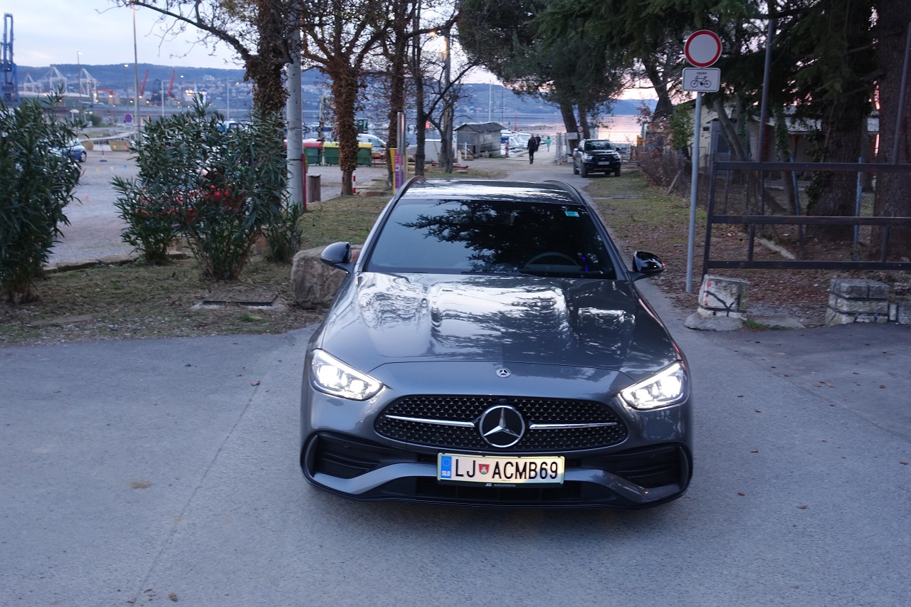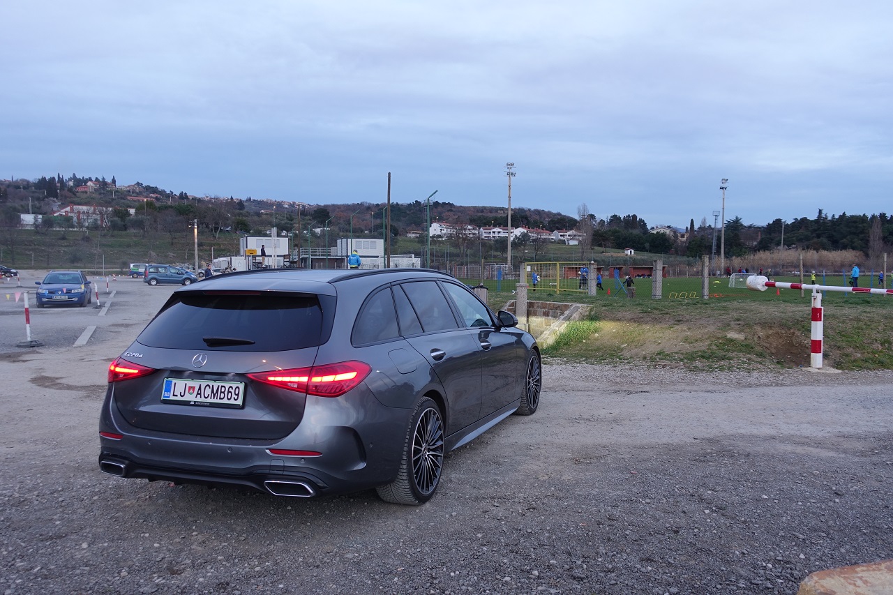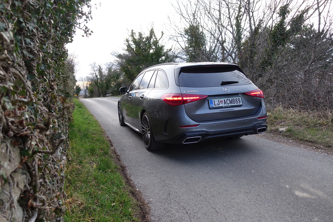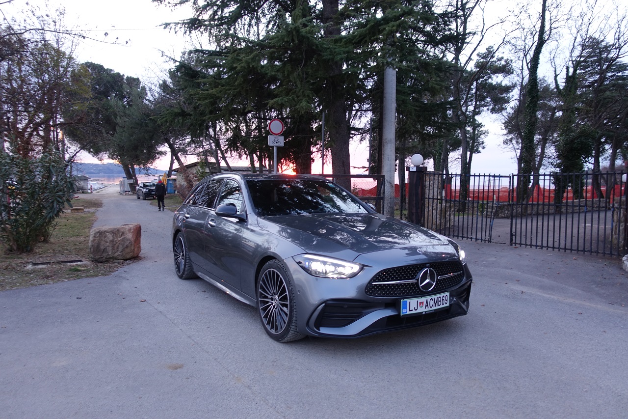 Med številnimi tehnološkimi rešitvami so mogoče tipke na volanu najmanj prepričljive, ker se ne odzivajo vedno natančno tako kot bi želeli in jemljejo pozornost voznika s ceste, ko želi preveriti. In, če gre za družinski avtomobil, bi si želeli USB vtičnice tudi zadaj. Sicer pa karavan z dolžino 4,75 m in širino 1,82 m ter medosno razdaljo 2,865 m, ni bil nikoli večji kot zdaj, čemur so hvaležni tisti, ki sedijo zadaj. Če niso višji od 1,90 m imajo dovolj prostora nad glavo in za kolena, kar pa ne velja za tretjega v sredini, ki bo zaradi širokega sredinskega grebena pristal, da ga peljemo le, če ne bo imel druge izbire. Dostop do zadnjih sedežev se proti zadnjemu delu nekoliko zniža. Kriv je novi, elegantno zaobljen športni zadek z dvodelno zadnjo lučjo, ki se podreja oblikovnemu in aerodinamičnemu učinku. Serijsko vgrajen v novi karavan razreda C je pokrov prtljažnika EASY-PACK, ki se ob pritisku na gumb samodejno odpre in zapre, kar pride ob nizkem spodnjem robu še kako prav pri večjem natovarjanju in raztovarjanju. Prtljažnik je v osnovi za 30 l večji, oblečen v kakovostno blago. Pogrešamo mogoče elastične trakove za pripenjanje stvari v njem in mogoče še 30 V vtičnico za vsak slučaj.