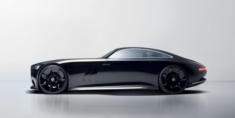 Notranjost vozila se zgleduje po art deco razkošju: modri žametni sedeži, medeninasti detajli in lebdeča steklena armaturna plošča ustvarjajo ambient, ki ga Mercedes opisuje kot »hiperanalogen« – klasične fizične elemente dopolnjujejo skriti digitalni zasloni. Enega od štirih analognih merilnikov, oblikovanega v logotip znamke, dopolnjuje umetna inteligenca, ki deluje kot digitalni sopotnik.