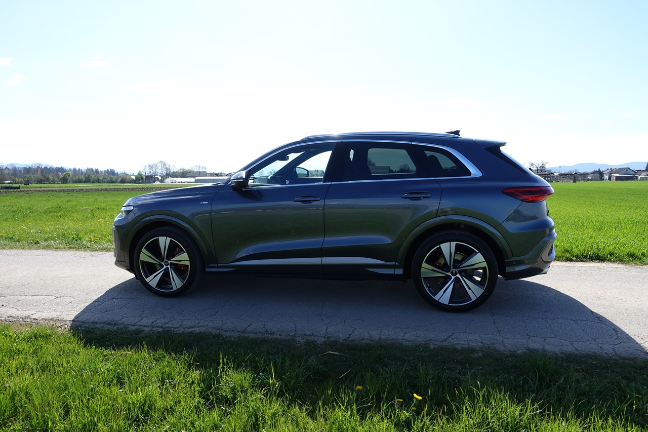 Zasnova novega Audija Q5 prinaša izrazite oblikovne novosti, ki združujejo športni karakter z elegantno preprostostjo. Zunanjost vozila je prepletena z napetimi linijami in izčiščenimi površinami, kar ustvarja dinamičen in hkrati prefinjen videz. Visoka ramenska linija in lepo oblikovani blatniki poudarjajo moč in stabilnost vozila, medtem ko so aerodinamični detajli, kot so zračne zavese na sprednjih kolesih, optimizirani za zmanjšanje turbulenc. Zadnji del vozila je še posebej opazen, saj vključuje svetlobni pas, ki povezuje zadnje luči in ponuja sodoben, digitalno zasnovan zaključek, ki je zagotovo eden od ključnih prepoznavnih elementov tega modela.