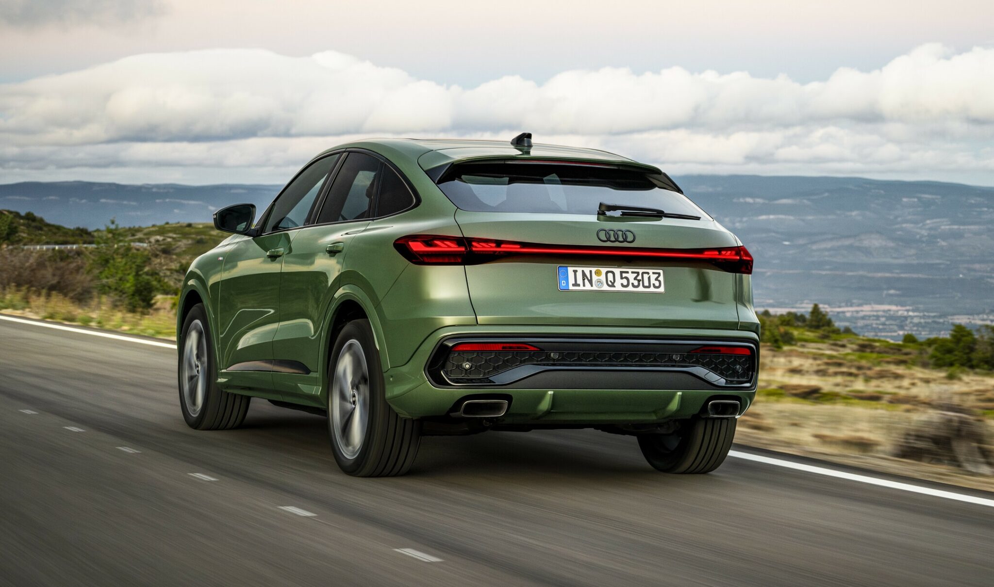 Sportback. Audi svojo modelsko paleto širi tudi s športnim kupejem Q5 Sportback. S progresivno in dinamično silhueto nagovarja oblikovalsko ozaveščene kupce, ki se ne želijo odpovedati prednostim SUV-ja. Audi Q5 Sportback tipične lastnosti SUV-jev, kot sta vsestranskost in prostornost, dopolnjuje s še bolj dinamično silhueto. Nezamenljiv dizajn z značilno nagnjenim zadkom in elegantnimi linijami zagotavlja športno podobo. Pri drugi generaciji modela Q5 Sportback znaša prostornina prtljažnika do 515 litrov, pri modelu SQ5 Sportback pa do 470 litrov. S podrto zadnjo sedežno klopjo se prtljažni prostor pri Q5 Sportbacku poveča na 1.415 litrov, pri SQ5 Sportbacku pa na 1.388 litrov. Audi Q5 Sportback se ponaša z vlečno zmogljivostjo do 2.400 kilogramov. Športna oblika z dinamično padajočo strešno linijo V primerjavi s prejšnjim modelom je oblika novega Audija Q5 Sportback veliko bolj čvrsta. Široki enodelni okvir mreže hladilnika leži visoko, obdajata ga funkcionalna navpična usmernika zraka (zračni zavesi).