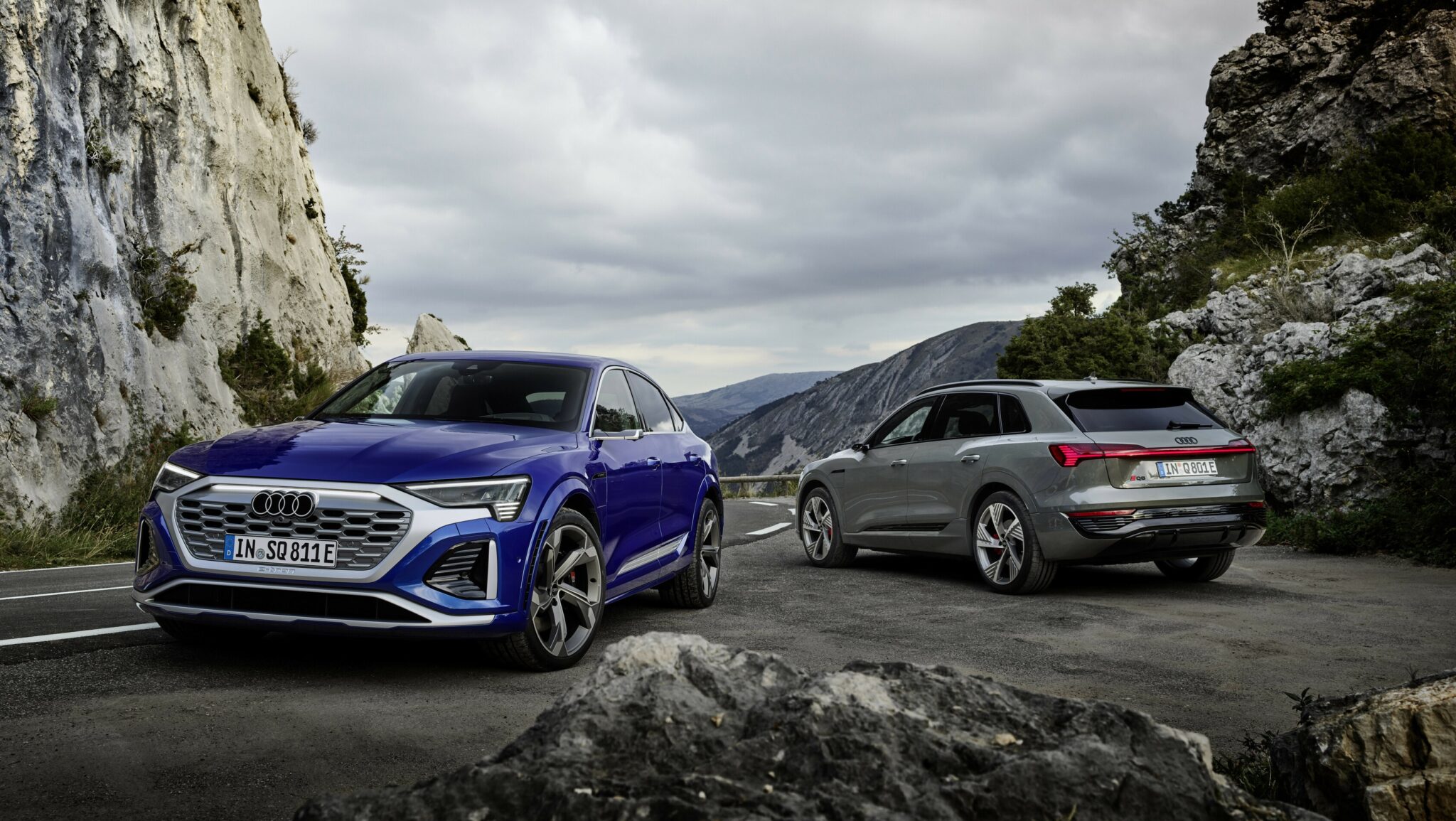 Q8 e-tron meri v dolžino 4.915 mm, širino 1.937 mm ter višino 1.619 mm pri modelu Sportback in 1.633 mm pri SUV-ju. Poudarja vrhunsko udobje in prostornost..SQ8 e-tron in SQ8 Sportback e-tron sta 2 mm nižja in 39 mm širša. Z medosno razdaljo 2.928 mm je tudi pred zadnjimi sedeži na voljo obilo prostora za noge. Velik je tudi prtljažnik, s prostornino pri SUV-ju 569 litrov, pri Sportbacku pa 528 litrov. Dodatnih 62 litrov je na voljo v sprednjem prtljažniku. Audi omogoča pri obeh karoserijskih različicah izbiro med tremi pogonskimi zasnovami z električnim štirikolesnim pogonom. Osnovni modelski izvedbi Audi Q8 50 e-tron in Audi Q8 50 Sportback e-tron z obema motorjema pri aktivirani funkciji boost razvijeta moč 250 kW in navor 664 Nm. Doseg po kriterijih WLTP meri do 491 km (SUV) oz. do 505 km (Sportback).