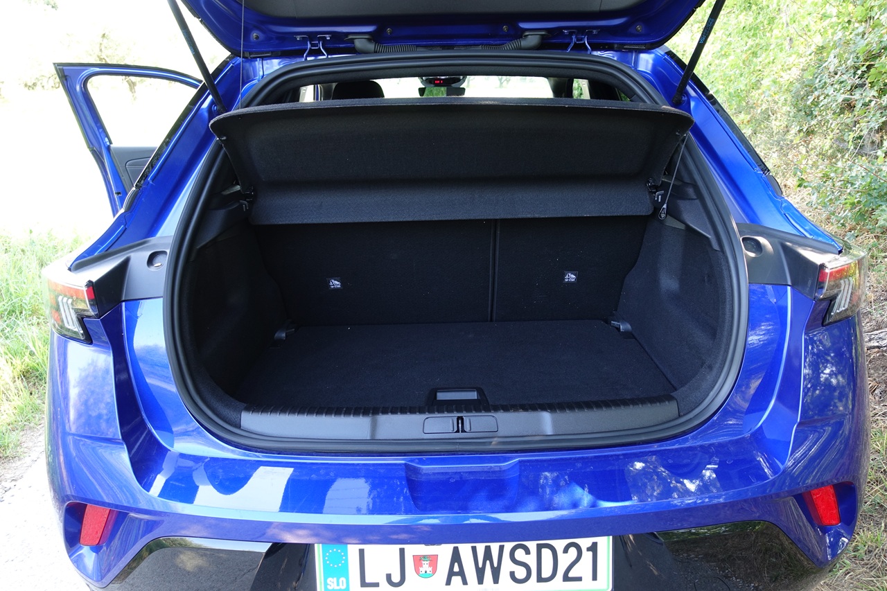 Dimenzije in masa: Dolžina/širina/višina: 415 / 179 / 154 cm / Medosna razdalja: 256 cm / Masa vozila v voznem stanju: 1.287 kg / Prostornina prtljažnika: 350 l / 1.105 l (s podrtimi sedeži) / Pnevmatike (serijske): 215/55 R18 / Rezervoar za gorivo: 44 l. Cena testne različice GS 26.790 eur. Cena z MPC popustom na Opel fin. 25.490,00 eur