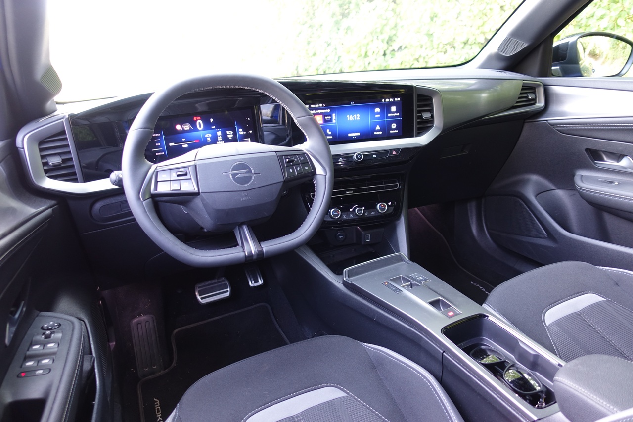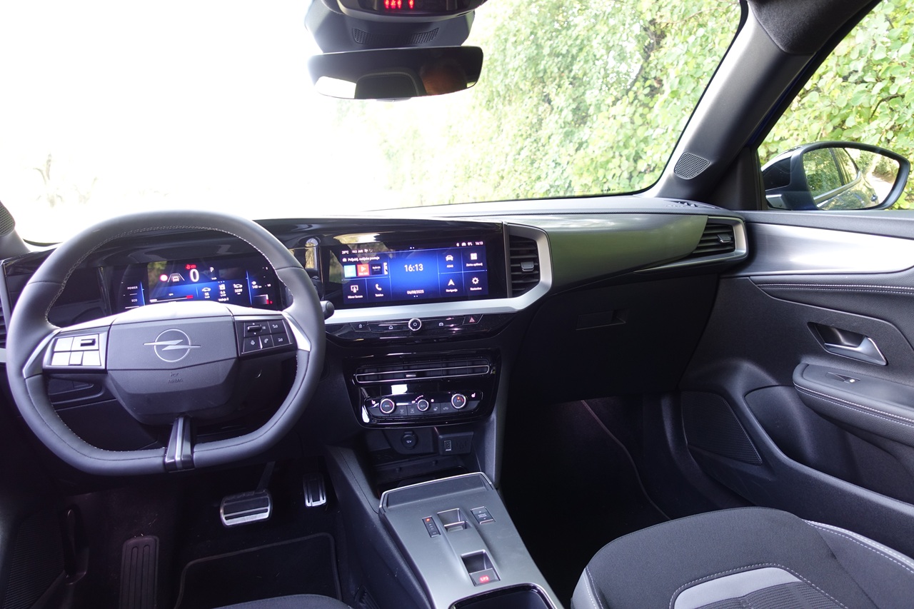 Opelova digitalizacija se kaže v konceptu Pure Panel, ki združuje dva zaslona – digitalni merilnik in osrednji multimedijski zaslon. Grafika je jasna, uporabniški vmesnik preprost, a v primerjavi s konkurenco nekoliko manj odziven in tehnološko napreden. Dobrodošlo pa je, da Opel še vedno ohranja nekaj fizičnih stikal za osnovne funkcije, kar olajša uporabo med vožnjo.