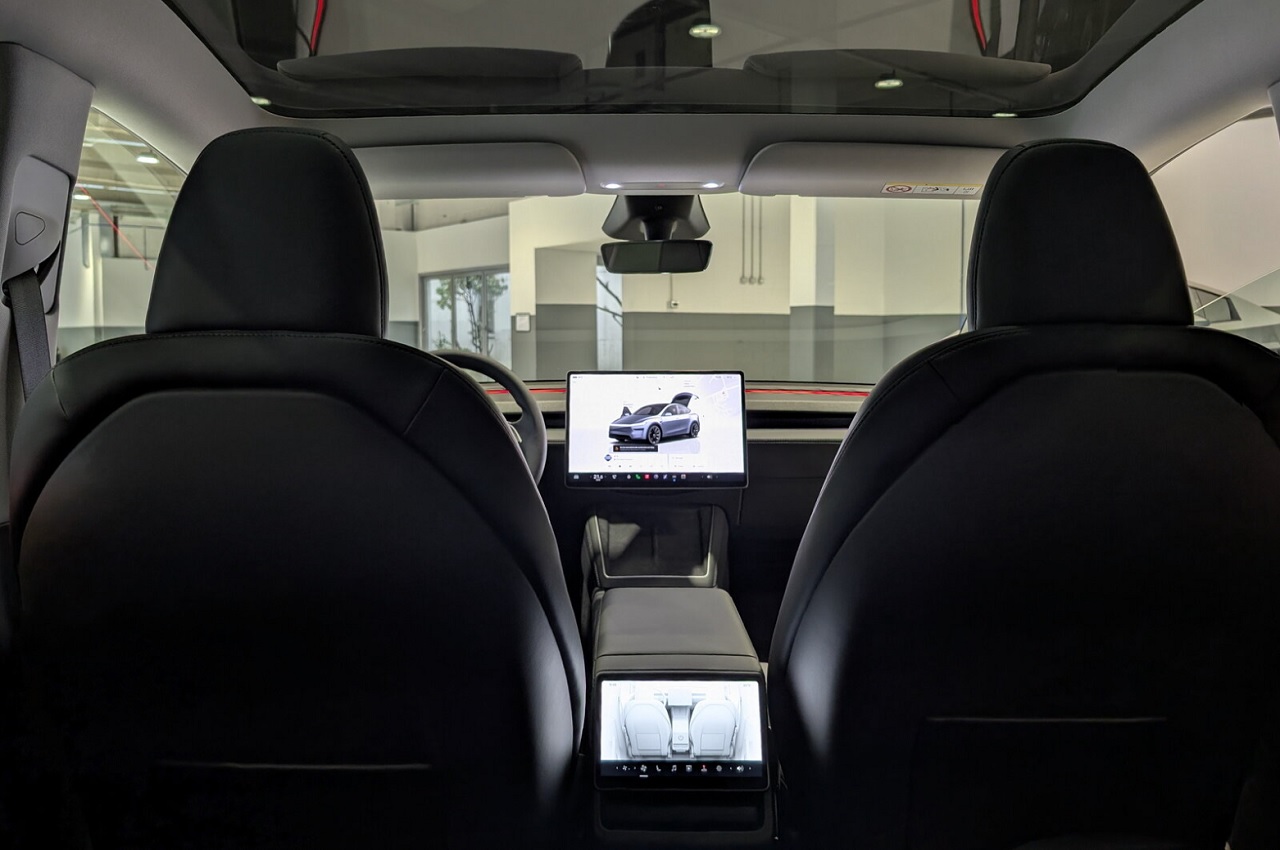 V notranjosti so opazne spremembe, podobne tistim pri posodobljenem Modelu 3: armaturna plošča ima sive tkaninske vložke, na voljo je brezžično polnjenje za dva telefona, osrednji 15,4-palčni zaslon pa služi tudi za izbiro prestav. Zadnje sedeže je mogoče nagibati s pritiskom na gumb, kar olajša prilagoditev prostora. Poleg tega je na voljo 8-palčni zaslon za potnike na zadnjih sedežih, prek katerega lahko upravljajo klimatsko napravo, igrajo igre ali uporabljajo multimedijski sistem.