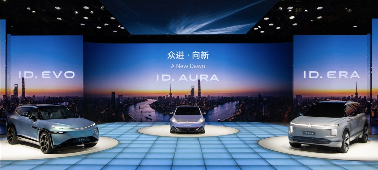 Na avtomobilskem salonu v Šanghaju 2025 je Volkswagen predstavil tri nova konceptna električna vozila – ID. Aura, ID. Era in ID. Evo. Gre za prototipe, razvite v sodelovanju z lokalnimi kitajskimi partnerji, ki napovedujejo novo generacijo pametnih električnih avtomobilov. S tem se nemški proizvajalec odziva na vse močnejšo konkurenco na Kitajskem, kjer je vodilni položaj že prevzela domača znamka BYD.