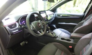 Osrednja konzola s kar veliko odlagalnega prostora omogoča tudi indukcijsko polnjenje pametnih telefonov in stranski predal z mrežo na sovoznikovi strani. Samodejna električna parkirna zavora s funkcijo Auto hold je na voljo že od prvega paketa opreme. Bolje opremljene različice imajo velik pokončen zaslon na dotik z diagonalo 24 cm (9,3”) za še bolj visokotehnološko notranjost (v ostalih paketih opreme je vodoraven zaslon z diagonalo 18 cm oz. 7”. Različica E-TECH Hibrid R.S. Line s prestavno ročico e-shifter nima mehanske povezave z menjalnikom, kakršno imajo najbolje opremljene različice modelov Espace in Captur.