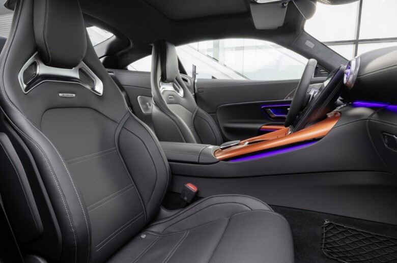 Aktivna aerodinamika, skrita v podvozju pred motorjem, je serijska pri vrhunskem modelu Mercedes-AMG GT: karbonski profil se pri 80 km/h razširi navzdol za približno 40 mm, kar ustvarja Venturijev učinek, ki “potiska” avto proti asfaltu. Aktiven je tudi zadnji spojler, ki spreminja svoj položaj glede na vozne razmere, da optimizira stabilnost ali zmanjša aerodinamični upor. Serijsko je vzmetenje s polaktivno stabilizacijo nagiba, z blažilniki, opremljenimi s polaktivnimi in medsebojno povezanimi hidravličnimi elementi, ter krmiljeno zadnjo osjo, med premikanjem krmili do 100 km/h v nasprotni smeri sprednjih koles in hkrati nad kolesi v isti smeri za izboljšanje okretnosti oziroma stabilnosti.