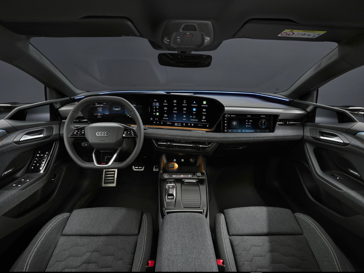 Notranjost Audija A6 e-tron je podobna nedavno predstavljenemu modelu Audi A5, z velikim zaslonom OLED, ki dominira na sredini armaturne plošče. Dvojni zaslon vključuje 11,9-palčni instrumentni zaslon in 14,5-palčni zaslon na dotik za multimedijski sistem. V dodatni opremi je na voljo tudi 10,9-palčni zaslon za sovoznika. Poleg tega se lahko nekdo odloči za sodobna digitalna vzvratna ogledala, ki nadomestijo tradicionalna z uporabo kamer. To pa dodatno izboljša doseg vozila, saj se dogajanje za vozilom prikazuje na dveh zaslonih na robovih armaturne plošče.