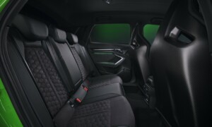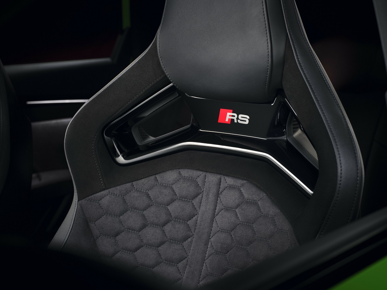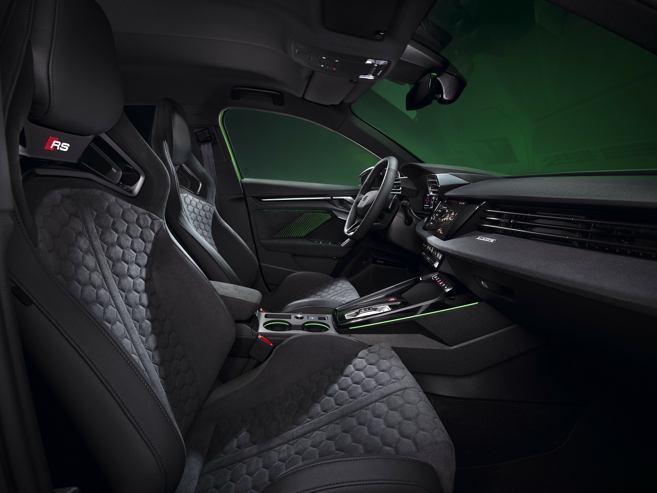 Ekspresivna zunanjost je poudarjena s tipičnimi RS barvami, kot sta Kyalami Green in Kemora Grey, novima kovinskima barvama Ascari Blue in Progressive Red, ter prvič tudi z mat izvedbo Daytona Grey. Singleframe in difuzor imata črno prevleko, ki je na voljo v visokem sijaju ali mat izvedbi. RS 3 je serijsko opremljen z mat črnimi 19-palčnimi aluminijastimi platišči. V notranjosti prevladujejo temni odtenki, vse je prilagojeno zmogljivosti – nov volan, športni ali školjkasti sedeži RS, karbonski elementi ter športni prikazovalniki.