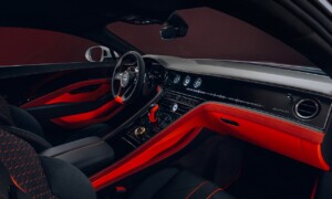 Ne glede na izbiro furnirja je armaturna plošča na sovoznikovi strani zaključena z gravuro zvočnega podpisa motorja W12 ali katero po osebni izbiri. Med elementi iz trajnostnega materiala so preproge, kombinirane z usnjem in izdelane iz reciklirane preje. Kupci bodo lahko izbirali med svetlimi ali temnimi elementi notranjosti ali iz titana. Kot posebna zanimivost so lopute prezračevalnih rež, ki so na voljo tudi v 3D-natisnjenem 18-karatnem zlatu.(foto: Bentley)
