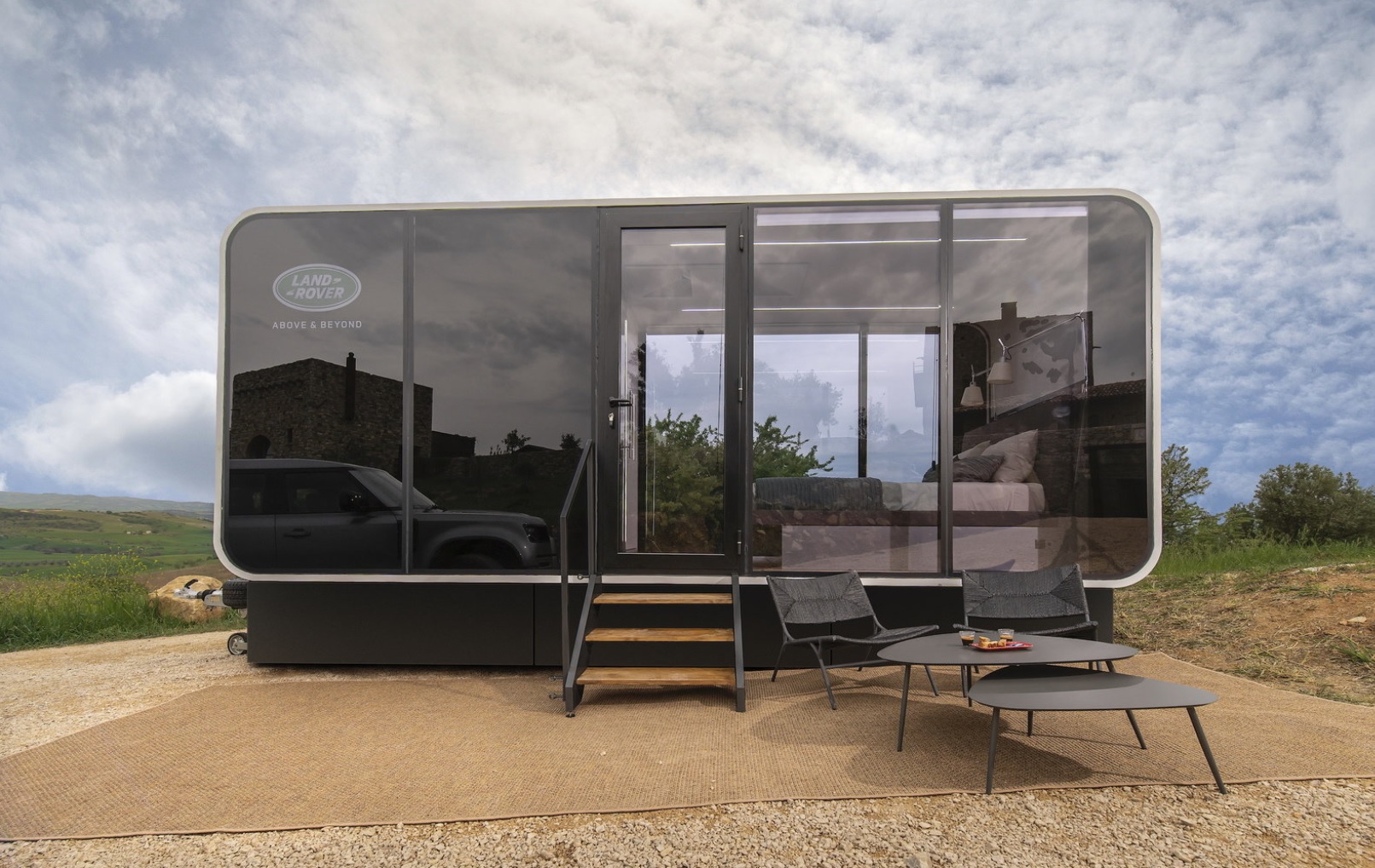 Kdor se bo odločil za to izvirno idejo, izbral eno od omenjenih lokacij sedel v Defenderja in se odpeljal. Na cilju ga bo čakala neke vrste super tehnološka počitniška prikolica, Eko dom. Predstavlja energijsko avtonomno stanovanjsko celico, zahvaljujoč fotovoltaičnim panelom, nameščenim na strehi. Eco Home je izdelan v Italiji, minimalističen, iz trajnostnih materialov: zunanjost je iz polikarbonata in recikliranih steklenih vlaken.