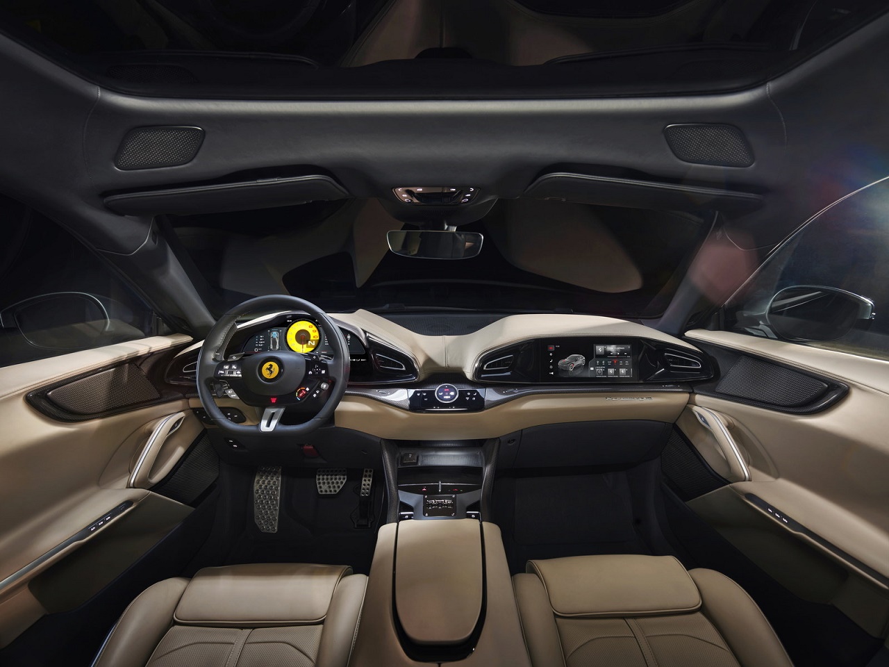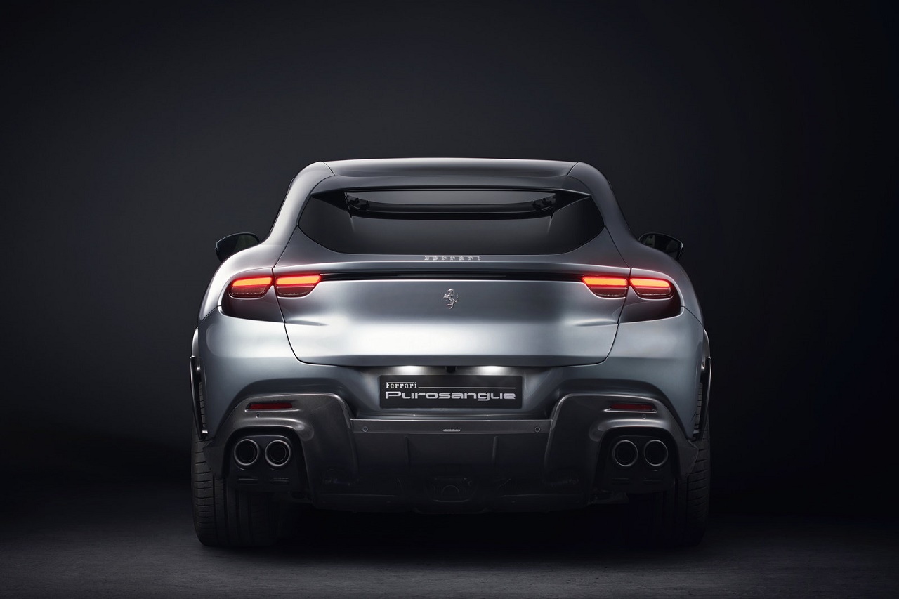 Ferrari Purosangue je svojevrsten prvenec iz Maranella s konceptom štirikolesnega, štirisedežnega SUV-ja, vendar teh treh kratic zapriseženim »ferraristom« raje ne omenjajte v tej povezavi. 4,97 m dolg, 2,03 m širok in 1,59 m visok in se ponaša z razmerji brez primere za Ferrari. Ena od zmagovalnih idej projekta, ki je bila nato sprejeta, so zadnja vrata z odpiranjem proti vetru, ki omogočajo enostaven dostop do dveh luksuznih foteljev. Ne nazadnje so tu tudi prtljažna vrata, ki se odpirajo nad 473-litrski prtljažnik: skratka Ferrari (tudi) za potovanja