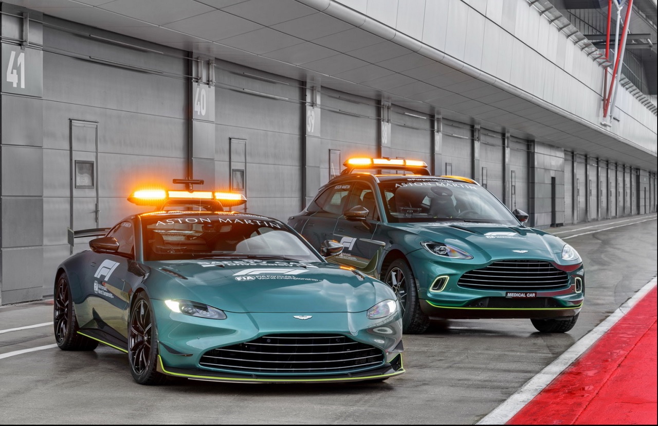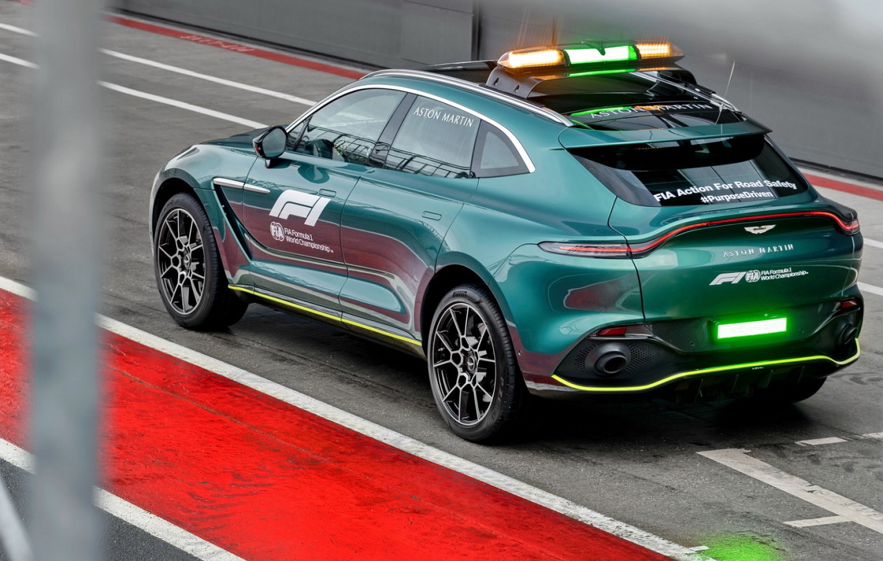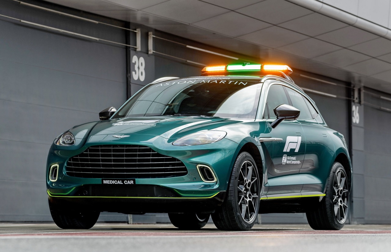 Aston Martin DBX je obarvan enako kot varnostni avtomobil. Poganja pa ga isti 4-litrski twin-turbo V8, ki tukaj prinese 550 KM in 700 Nm navora. Uradni medicinski avtomobil ima precejšnjo količino opreme, vključno z veliko medicinsko torbo, defibrilatorjem, dvema gasilnima aparatoma in kompletom za opekline. Dodatni zaslon bere resnične biometrične podatke, ki jih ta tehnologija zagotavlja v rokavicah voznikov in ki v primeru nesreče zagotavljajo informacije o njihovem stanju.