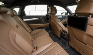 Med izpostavljeno opremo velja omeniti še aktivno dušenje hrupa, elektronsko nadzorovane vzmetenje, zadnje krmiljenje za večjo okretnost ter velik 27-palčni informacijski zaslon, ki dodatno poudarja tehnološko naprednost vozila.