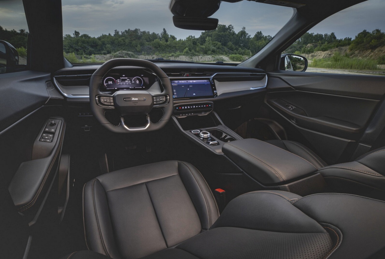 Notranjost združuje tradicijo in sodobne rešitve. Namesto enotnega velikega zaslona sta merilni del in multimedijski sistem ločena, kar zagotavlja večjo preglednost. Večina funkcij se upravlja prek osrednjega zaslona, klimatska naprava pa ohranja fizične gumbe, kar bo razveselilo voznike, ki prisegajo na klasično ergonomijo. Namesto običajnih kljuk za vrata so nameščeni digitalni gumbi, resnično usnje pa je nadomestil vinil v kombinaciji z recikliranimi materiali, s čimer Jeep sledi trajnostnim smernicam avtomobilske industrije.
