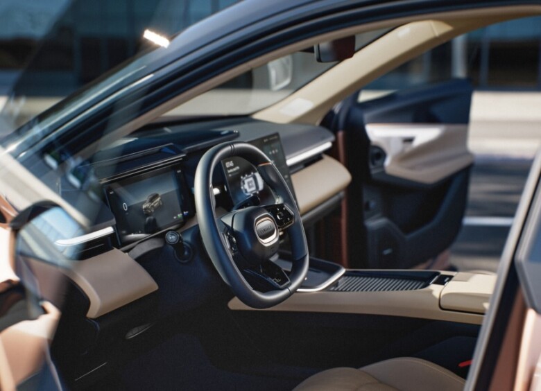 Minimalistično zasnovana notranjost je skoraj povsem brez fizičnih gumbov – izjema so le krmilni elementi na volanu. Večina funkcij se upravlja prek velikega osrednjega zaslona, ključne informacije o vožnji pa so prikazane na digitalni armaturni plošči.