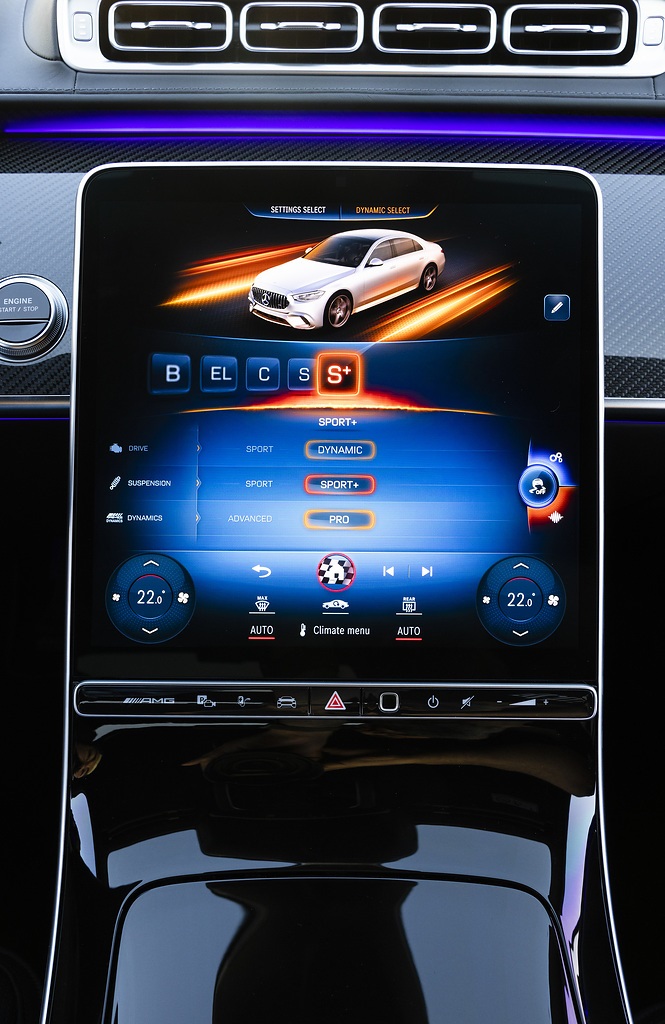 Pogonski sklop je v tem primeru manj osredotočen na električni doseg in bolj na najboljše zmogljivosti v razredu. S 590 kW (802 KM) sistemske moči in 1430 Nm sistemskega navora limuzina postavlja nove standarde v segmentu. Pospešek 3,3 sekunde do 100 km/h in opcijska največja hitrost 290 km/h poudarjata vrhunsko dinamično vozno zmogljivost najzmogljivejše limuzine razreda S. Sistemi, kot so vzmetenje AMG RIDE CONTROL+, stabilizacija nagiba AMG ACTIVE RIDE CONTROL in krmiljenje zadnje osi serijsko zagotavljajo širok razpon med vozno dinamiko in udobjem.