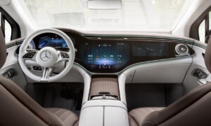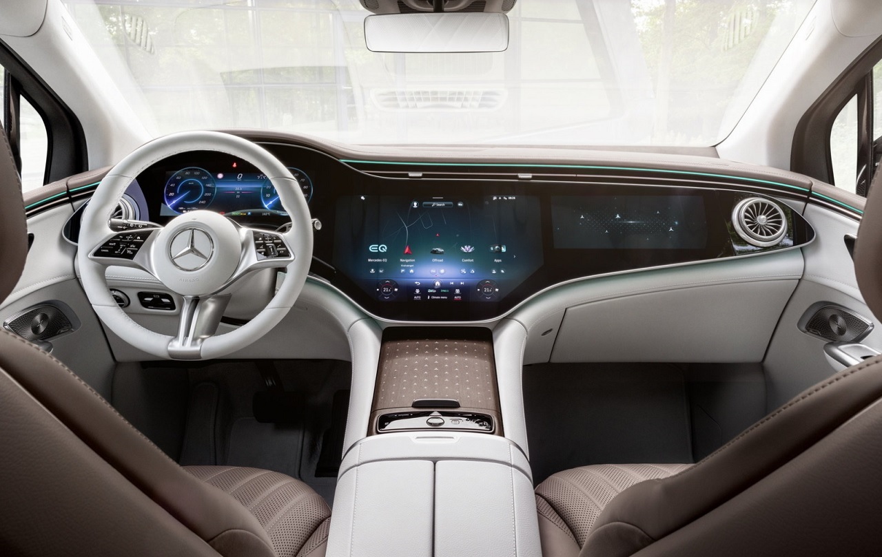 Standardna oprema novega športnega terenca Mercedes EQE, ki je že v osnovi popolna, je dodatno lahko obogatena z vrsto dodatkov. Med najbolj spektakularnimi je MBUX Hyperscreen: vmesnik sofisticiranega multimedijskega sistema, sestavljen iz treh zaslonov (sopotniku je namenjen celo 12,3-palčni), ki so med seboj skoraj brezšivno povezani in se razteza za dobrih 141 cm, oziroma po skoraj celotni širini armaturne plošče.