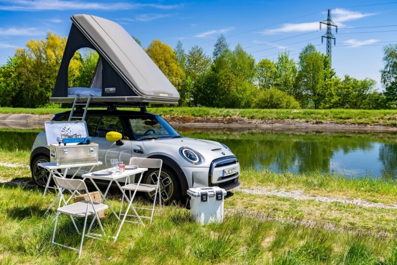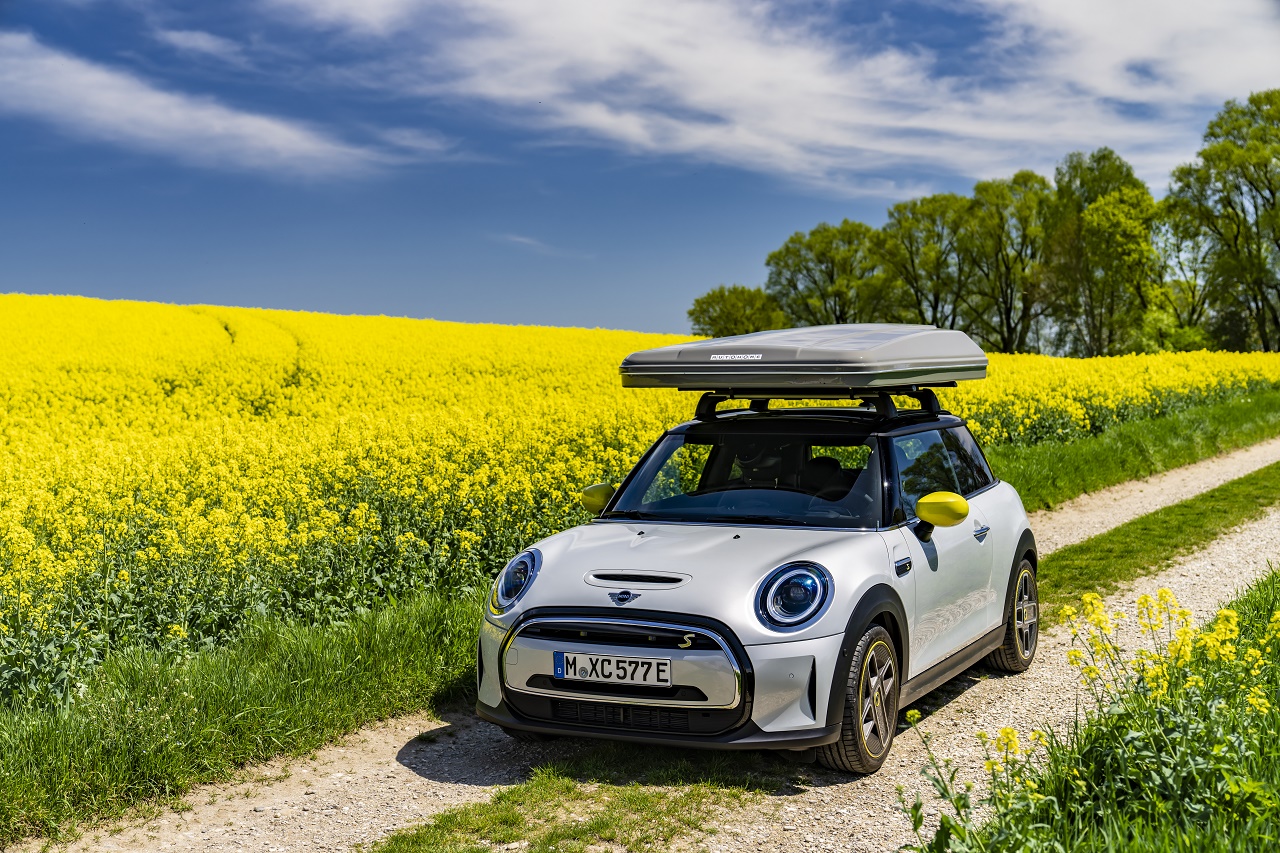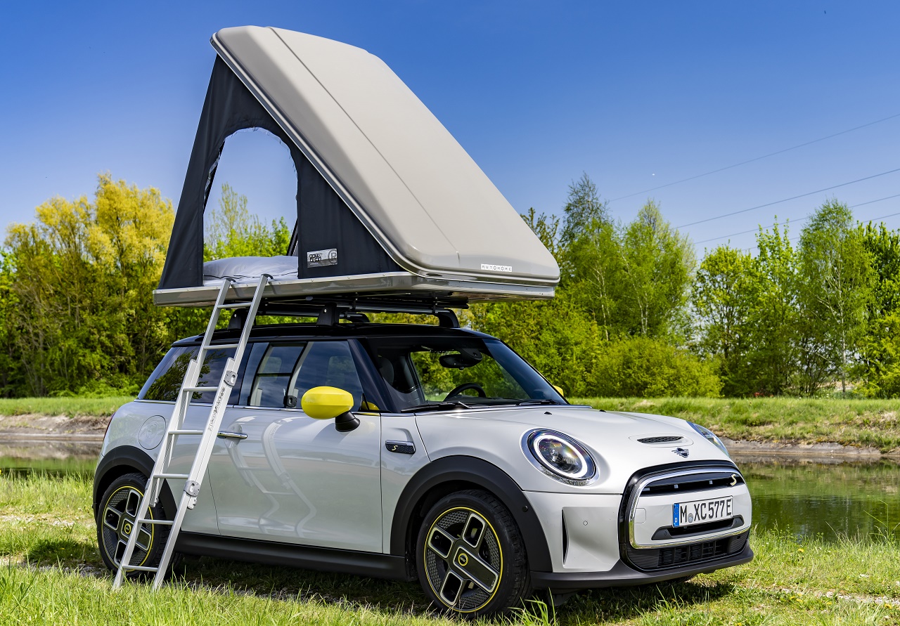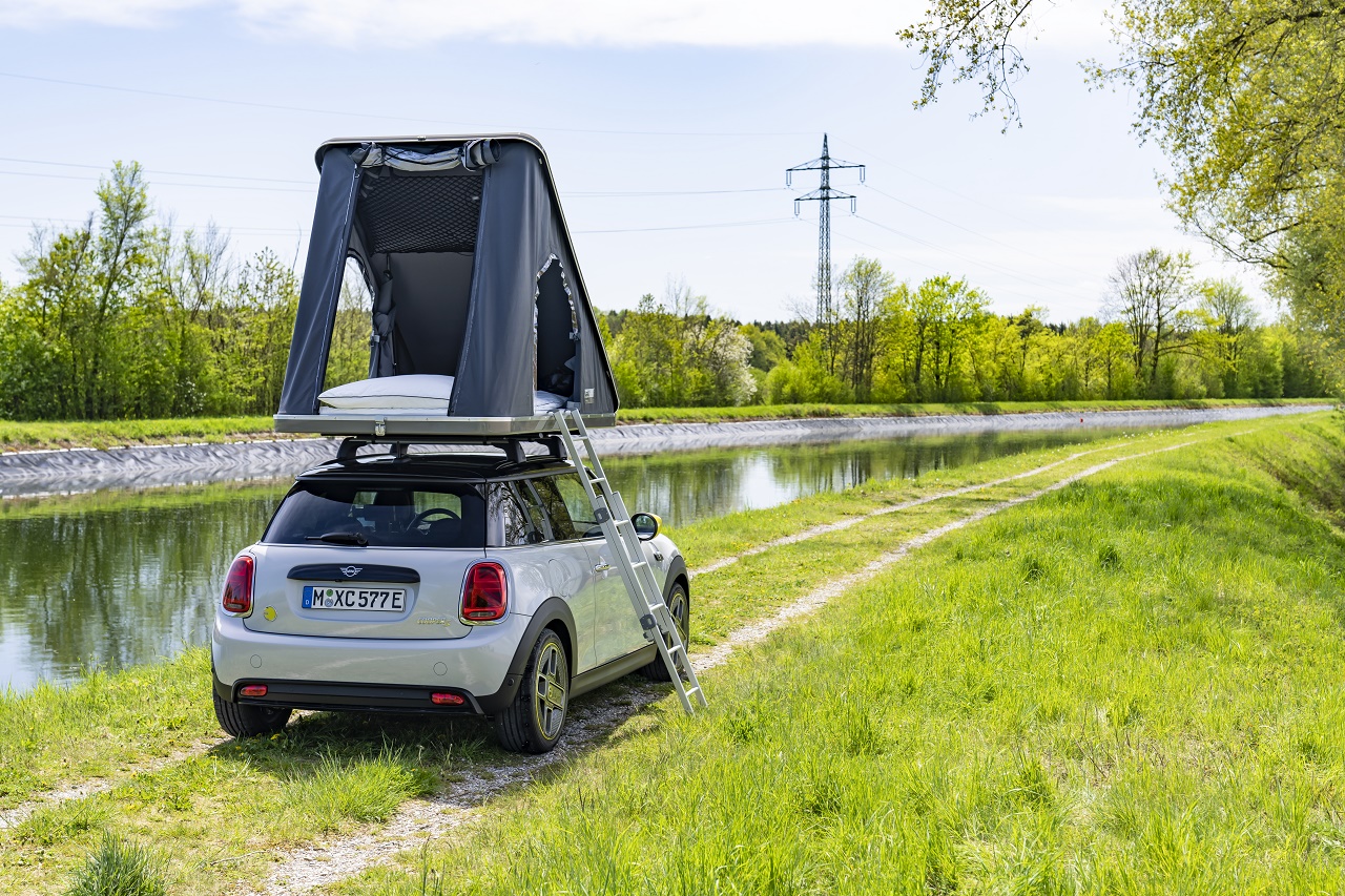 MINI Cooper SE je mogoče opremiti na enak način, kot edinega na svojem konkurenčnem področju, ki je lahko opremljen tudi s strešnimi nosilci. Ustrezen sistem nosilcev je na voljo v ponudbi originalnih dodatkov MINI.. MINI Cooper SE s strešnim šotorom ne omejuje opazno temperamenta modela Cooper SE s 135 kW / 184 KM, ki lahko z mesta do 100 km / h odzove v 7,3 sekunde. MINI Cooper SE Countryman ALL4 kot robustno vsestransko vozilo obvlada tudi svojo turistično vlogo z različnimi odtenki.