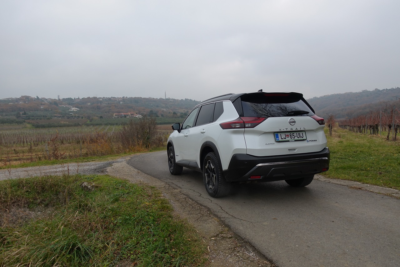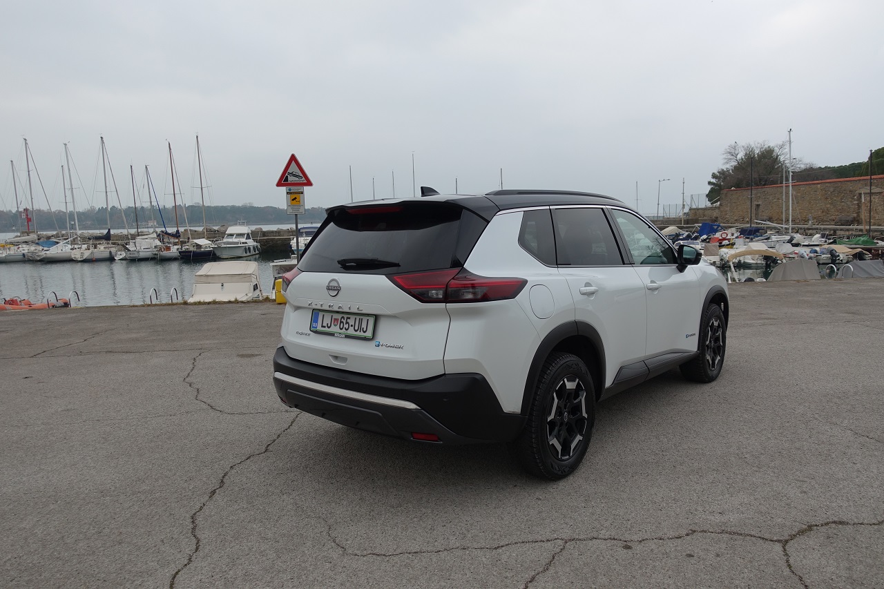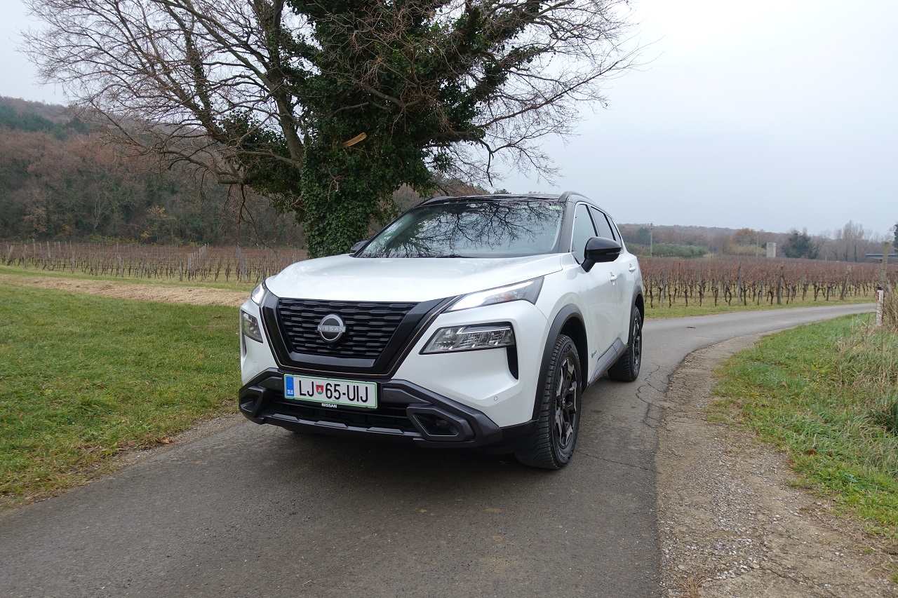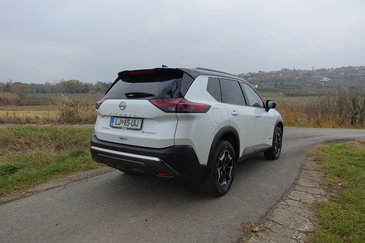 Hibridna tehnologija e-POWER: učinkovita, a z omejitvami. Glavna posebnost novega X-Traila je napreden hibridni pogonski sklop e-POWER. Sistem združuje 1,5-litrski turbo trivaljnik, ki deluje kot generator električne energije, in elektromotorje, ki poganjajo kolesa. Rezultat je izjemno tiha vožnja z občutkom popolnoma električnega vozila, brez potrebe po polnjenju baterije na polnilnici. Sistem omogoča hitro in gladko pospeševanje s 214 konjskimi močmi, kar je še posebej uporabno v mestnem prometu. Vendar ima pogon določene omejitve: med vožnjo po avtocesti poraba goriva opazno naraste in se giblje okoli 10,4 km/l pri hitrosti 130 km/h.