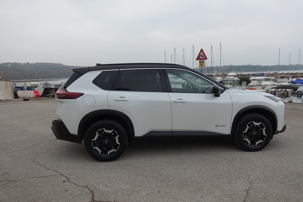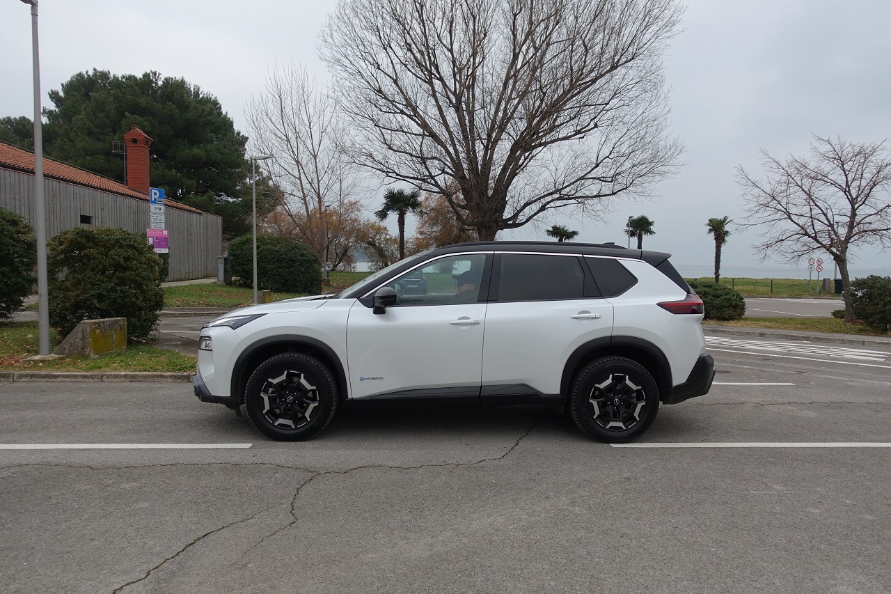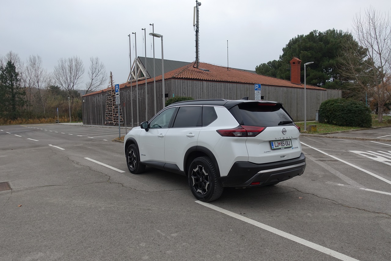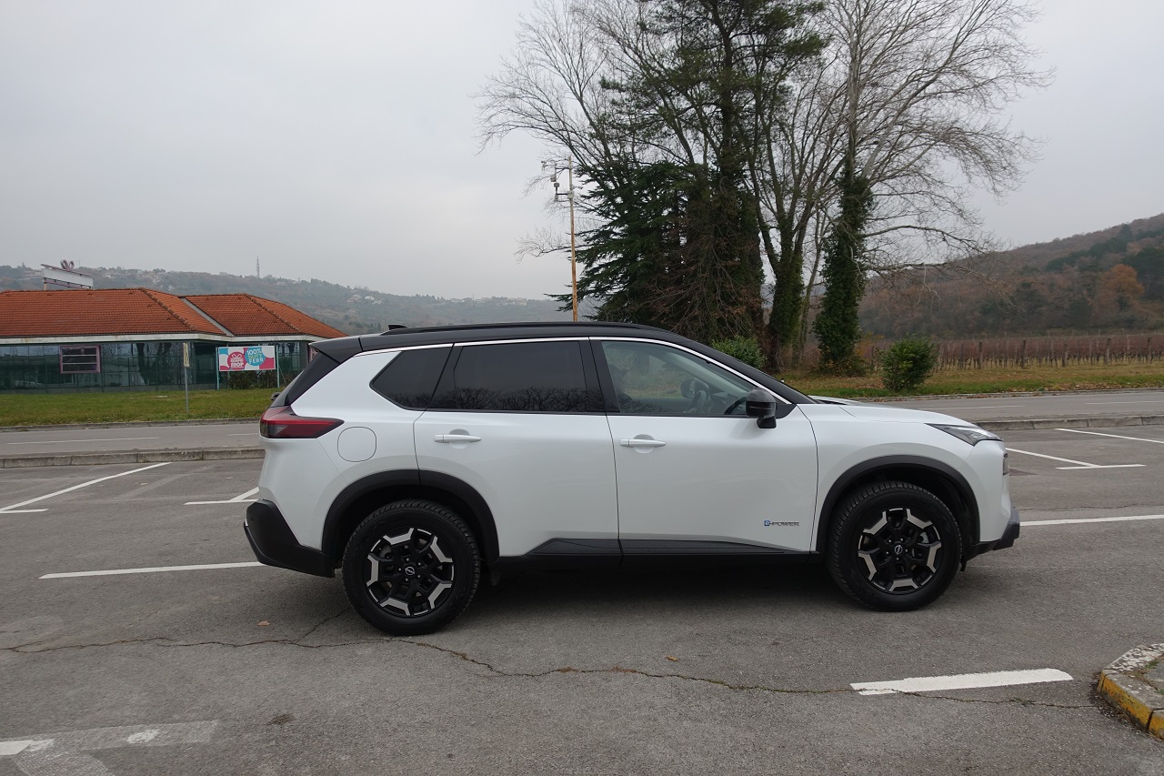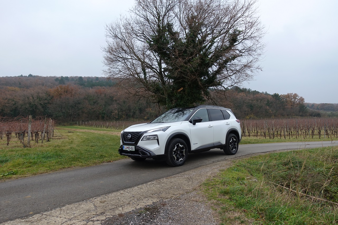 Hibridna tehnologija e-POWER: učinkovita, a z omejitvami. Glavna posebnost novega X-Traila je napreden hibridni pogonski sklop e-POWER. Sistem združuje 1,5-litrski turbo trivaljnik, ki deluje kot generator električne energije, in elektromotorje, ki poganjajo kolesa. Rezultat je izjemno tiha vožnja z občutkom popolnoma električnega vozila, brez potrebe po polnjenju baterije na polnilnici. Sistem omogoča hitro in gladko pospeševanje s 214 konjskimi močmi, kar je še posebej uporabno v mestnem prometu. Vendar ima pogon določene omejitve: med vožnjo po avtocesti poraba goriva opazno naraste in se giblje okoli 10,4 km/l pri hitrosti 130 km/h.