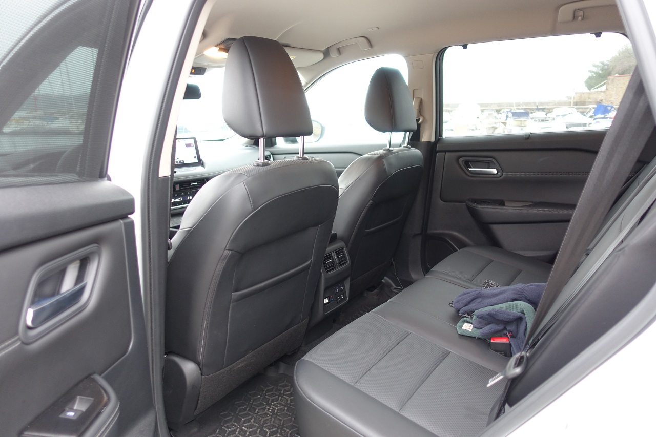 Notranjost: premišljena, prostorna, digitalno napredna. Kabina Nissan X-Traila izstopa s prostornostjo in premišljeno ergonomijo. Sedeži so veliki, udobni in nastavljivi, kar omogoča sproščeno vožnjo tudi za višje voznike. Zadnja klop je razdeljena na tri dele in omogoča prilagodljivost, saj je nastavljiva po dolžini in naklonu. Dodatna tretja vrsta sedežev je uporabna predvsem za otroke ali krajše izlete, dostop do njih pa je nekoliko otežen. Prostornost dopolnjujejo številni predali za shranjevanje, vključno z uporabnim prostorom pod konzolo.