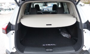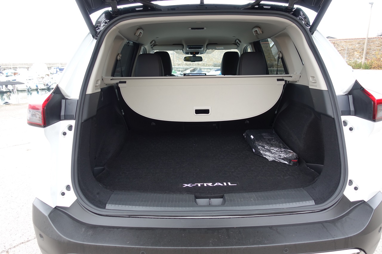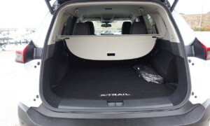 Prtljažnik: primeren, a s kompromisi. Z zloženima sedežema tretje vrste X-Trail ponuja dolg in raven tovorni prostor, ki je dovolj prostoren za večino potreb. Vendar prostornina pade na zgolj 127 litrov, če so sedeži dvignjeni. Mehka platnena pregrada omogoča prilagoditev za prtljago, ki rahlo presega višino prtljažnika, motorizirana prtljažna vrata pa olajšajo dostop.