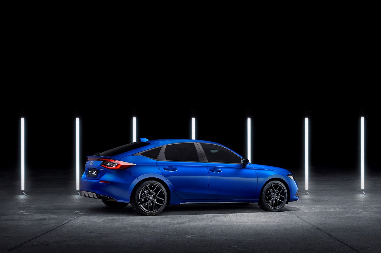 Popolnoma novi Civic s standardno Hondino preizkušeno tehnologijo pogonskega sklopa e:HEV zaključuje strategijo elektrificiranja vseh svojih glavnih modelov do leta 2022. Poganja ga Hondin pogonski sklop e:HEV, ki ga sestavljajo na novo razviti 2,0-litrski motor Atkinsonovega cikla z neposrednim vbrizgavanjem, dva elektromotorja, nova krmilna enota in inteligentna napajalna enota. Zagotavlja največjo moč motorja 135 kW in 315 Nm navora. Pri Hondi so za končni cilj želeli doseči manj kot 110 gramov CO2 na km po protokolu WLTP. Civic obljublja odločno, pomirjujočo vodljivost in stabilnost na ravni črti in celovit nabor naprednih varnostnih funkcij, ki so na voljo v standardni opremi. Civic e:HEV bo evropskim kupcem na voljo jeseni 2022.