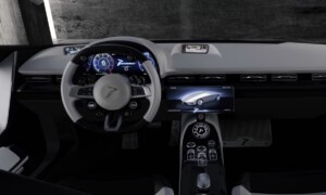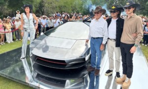 Karoserija iz poliranega aluminija Izjemno oblikovalsko delo zaznamuje surov aluminij, poliran do visokega sijaja, ki ustvarja brezhiben prehod med kovinskimi površinami in steklenimi elementi. Ta monolitni videz avtomobilu daje umetniški pridih in občutek skulpture, izklesane iz enega kosa.
