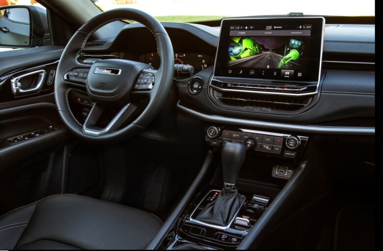 Oblikovno osvežena je tudi notranjost. Popolnoma preoblikovana armaturna plošča razkošnega videza, z radodarnim usnjenim trakom prinaša povsem novi 10,1-palčni zaslon multimedijskega sistema podoben tabličnim računalnikom. Tudi digitalna armaturna plošča je popolnoma spremenjena. Obeta se tudi bogat nabor sistemov za pomoč pri vožnji. Po neuradnih informacijah pa naj bi bila ponudba motorjev nespremenjena. Zlasti jubilejni Jeep Compass naj bi izstopal s svojimi prazničnimi logotipi na usnjenem oblazinjenju sedežev, posebnimi 18-palčnimi platišči in brušenimi detalji maske motorja. Podrobneje že prihodnji teden.