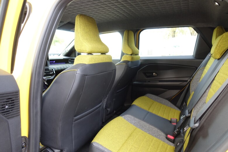 Čeprav gre za mestni avtomobil, je prostora presenetljivo veliko. Renault 5 sprejme pet potnikov, prtljažnik pa meri 326 litrov – torej več kot pri številnih tekmecih. Zadnja klop je sicer primernejša za dva odrasla potnika, a s povsem ravnim dnom omogoča udoben vstop in več prostora za noge. Edina manjša zamera je nekoliko visoka nakladalna robova prtljažnika.