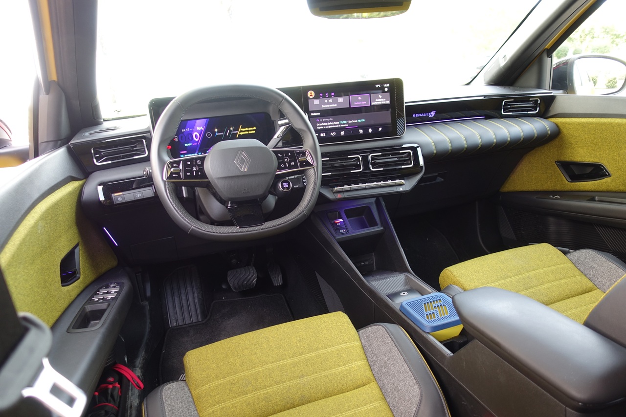 Notranjost Renaulta 5 je svet zase – tehnološko napredna, a prežeta z duhom preteklosti. Dva 10-palčna zaslona sestavljata sistem OpenR Link z integriranimi Google storitvami, kot so Maps, Assistant in Play Store. Navigacija v realnem času, glasovno upravljanje in personalizacija so samoumevni.